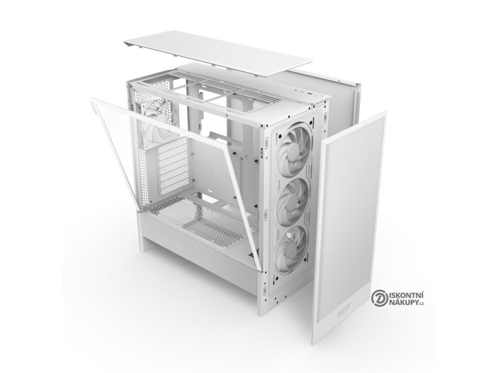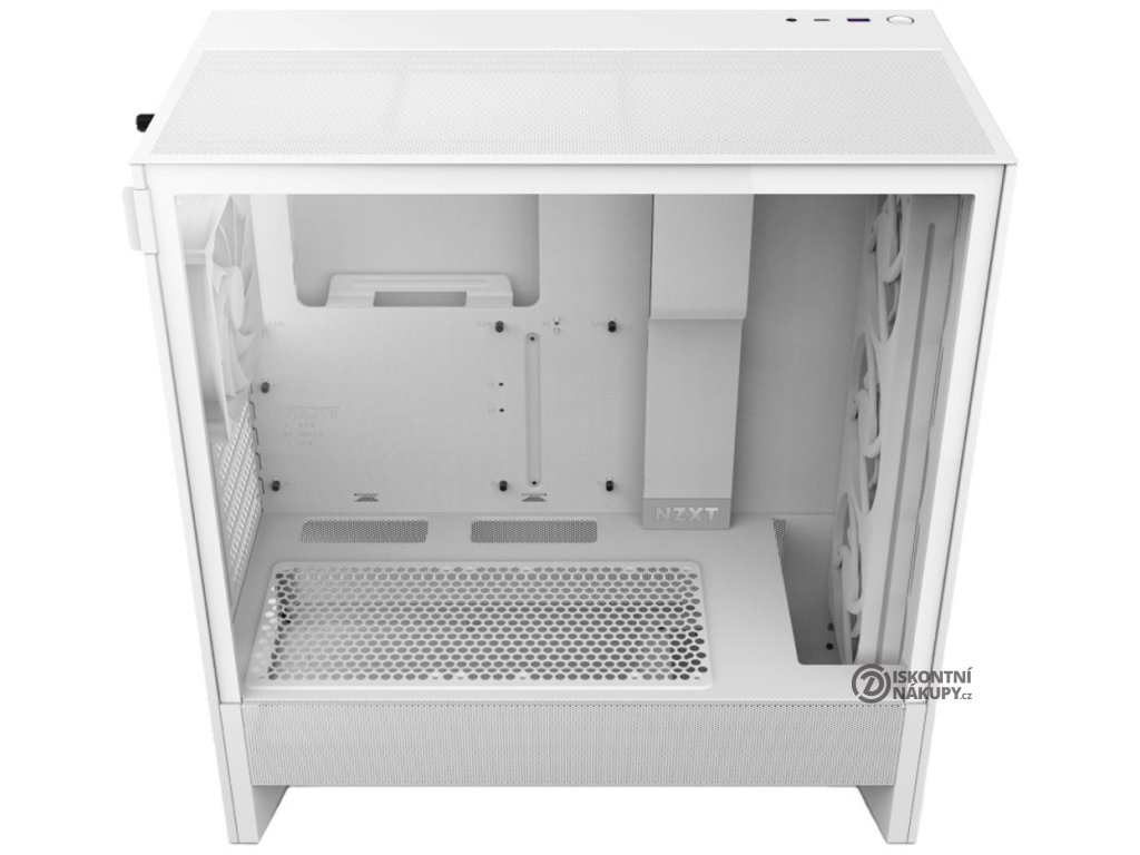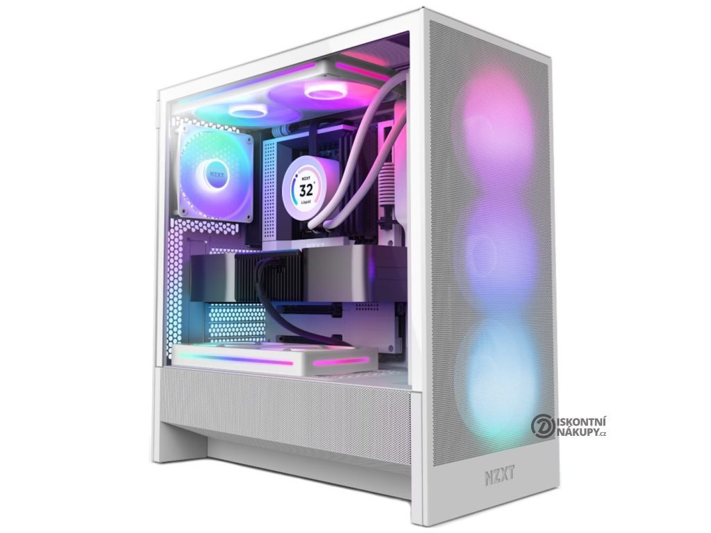 NZXT H5 Flow RGBElegantní počítačová skříň nabízí stylovou prosklenou bočnici, perforovaný panel a prvotřídní kovovou konstrukci. Osazení komponentami je lehké díky systému správy kabeláže, kabely tedy nikde zbytečně nepřekáží. Skříň je na přední straně osazena jedním RGB ventilátorem o velikosti 360 mm (kombinace 3× 120mm ventilátorů) a jedním 120mm ventilátorem bez podsvícení na zadní straně. Potěší také možnost rozšíření o další čtyři ventilátory. Samozřejmostí jsou prachové filtry. Důmyslné řešení umožňuje pohodlné umístění až 360 mm dlouhého výměníku vodního chlazení na přední straně. Ve skříni je dostatek prostoru pro chladič CPU do výšky až 170 mm a grafickou kartu o délce až 410 mm. Na horním panelu je k dispozici jeden port USB 3.0, jeden port USB-C a kombinovaný port sluchátek a mikrofonu. Skříň je dodávána bez zdroje.