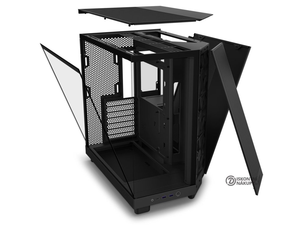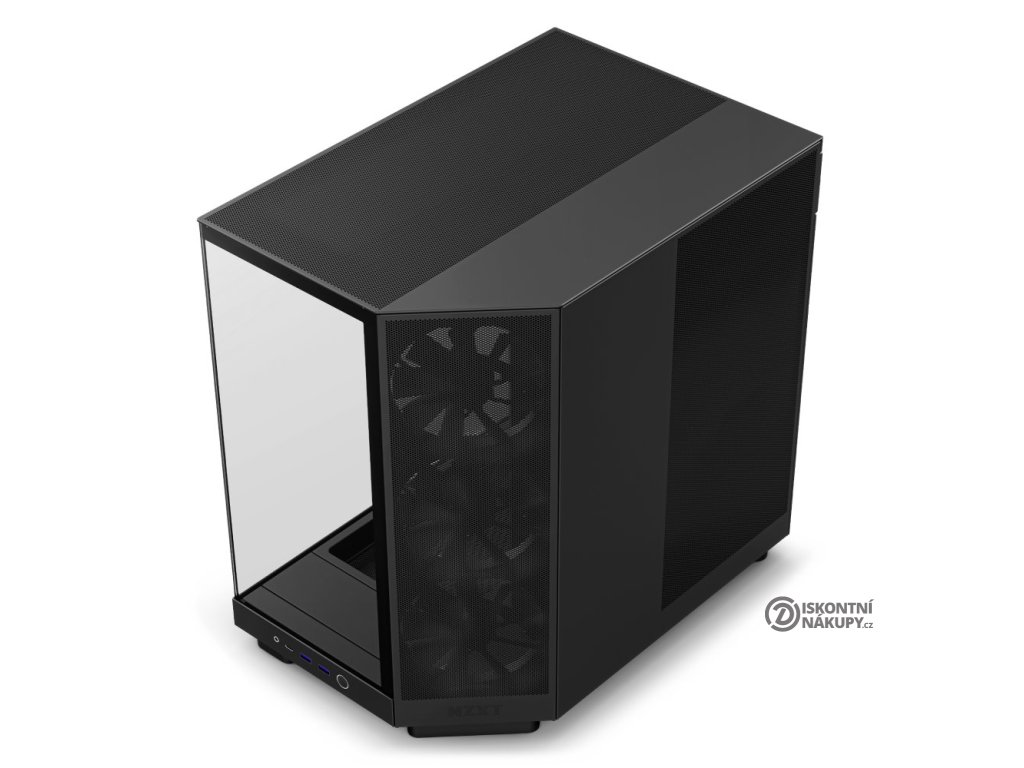 NZXT H6 FlowElegantní počítačová skříň nabízí stylovou prosklenou bočnici a čelo, perforovaný panel a prvotřídní kovovou konstrukci. Osazení komponentami je lehké díky systému správy kabeláže, kabely tedy nikde zbytečně nepřekáží. Skříň je osazena třemi 120mm ventilátory. Potěší také možnost rozšíření o dalších šest ventilátorů. Samozřejmostí jsou prachové filtry. Důmyslné řešení umožňuje pohodlné umístění až 360 mm dlouhého výměníku vodního chlazení na horní straně nebo až 120 mm dlouhého výměníku na zadní straně. Ve skříni je dostatek prostoru pro chladič CPU do výšky až 163 mm a grafickou kartu o délce až 365 mm. Na přední straně jsou dva USB 3.0 porty, USB-C port a kombinovaný audio port sluchátek a mikrofonu. Skříň je dodávána bez zdroje.