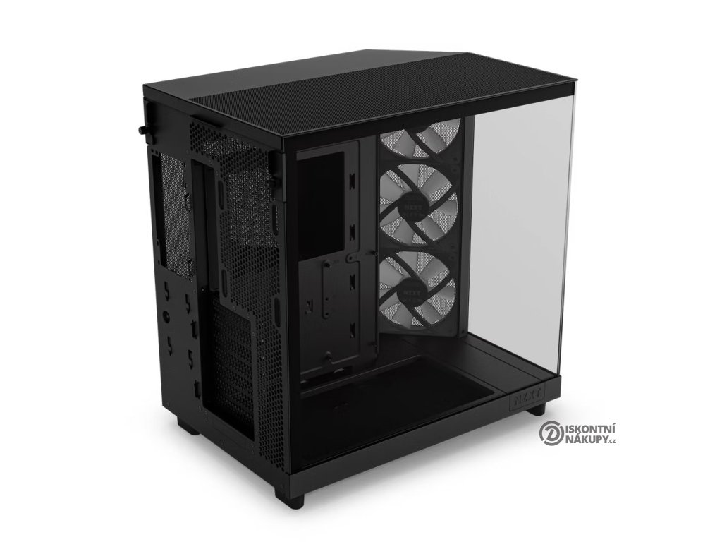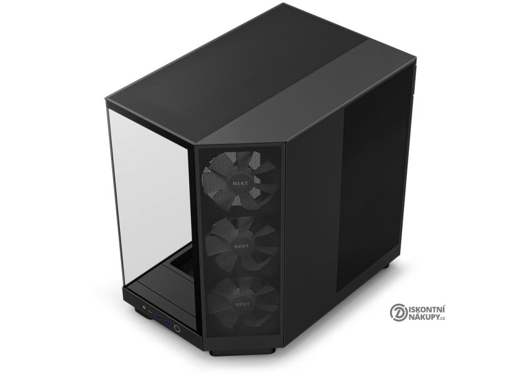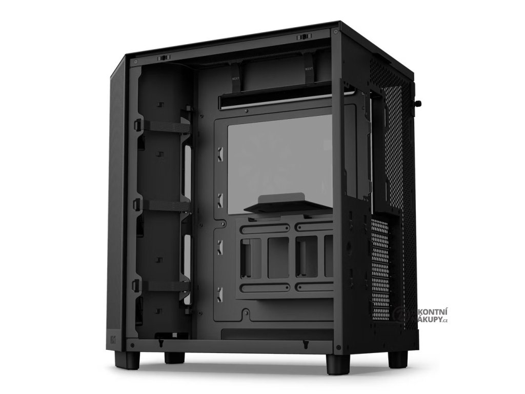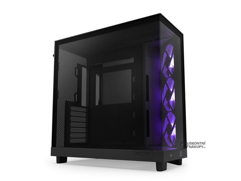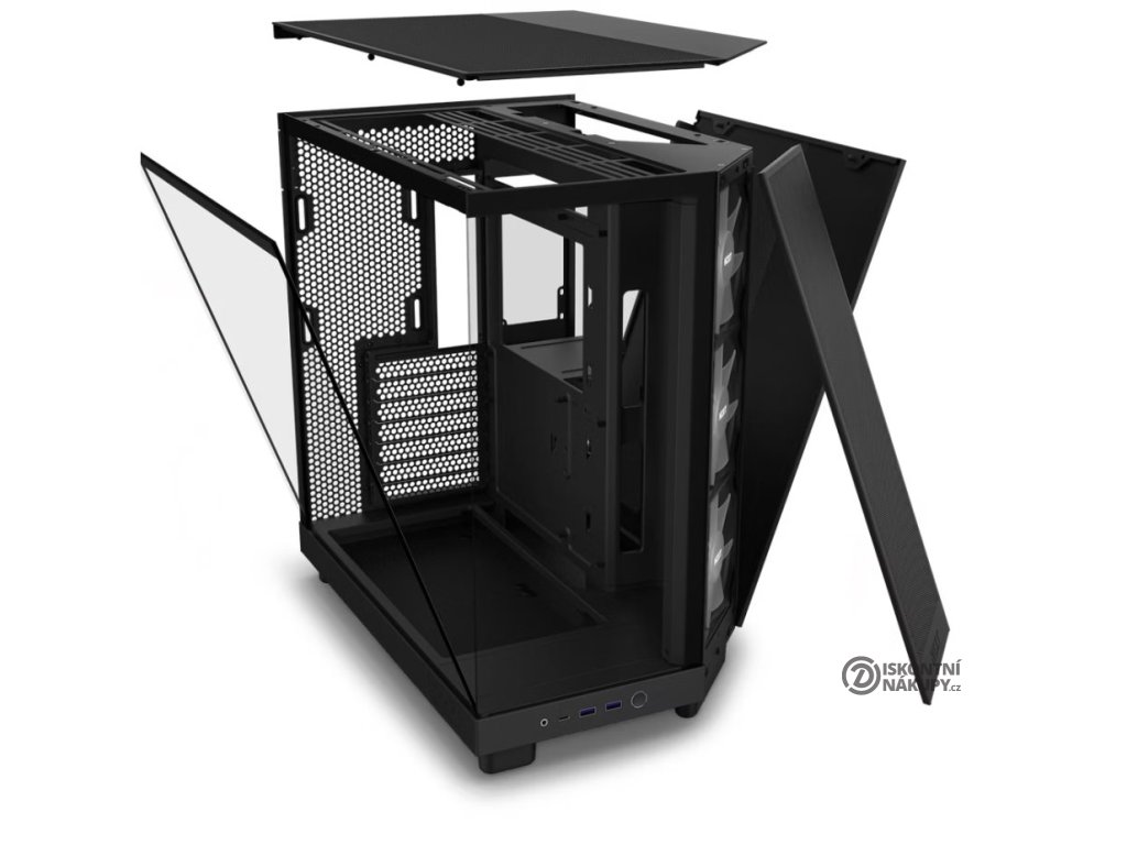 NZXT H6 Flow RGBElegantní počítačová skříň nabízí stylovou prosklenou bočnici a čelo, perforovaný panel a prvotřídní kovovou konstrukci. Osazení komponentami je lehké díky systému správy kabeláže, kabely tedy nikde zbytečně nepřekáží. Skříň je osazena třemi 120mm RGB ventilátory. Potěší také možnost rozšíření o dalších šest ventilátorů. Samozřejmostí jsou prachové filtry. Důmyslné řešení umožňuje pohodlné umístění až 360 mm dlouhého výměníku vodního chlazení na horní straně nebo až 120 mm dlouhého výměníku na zadní straně. Ve skříni je dostatek prostoru pro chladič CPU do výšky až 163 mm a grafickou kartu o délce až 365 mm. Na přední straně jsou dva USB 3.0 porty, USB-C port a kombinovaný audio port sluchátek a mikrofonu. Skříň je dodávána bez zdroje.