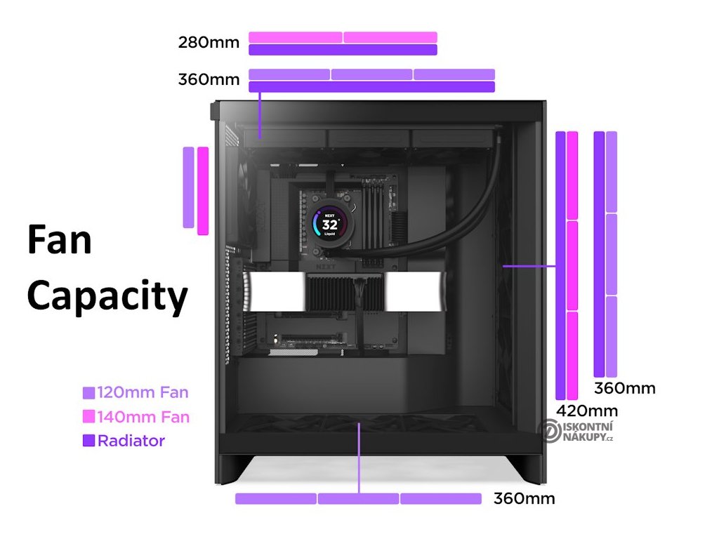 | Velikost instalovaného předního ventilátoru: | 3× 120 mm |