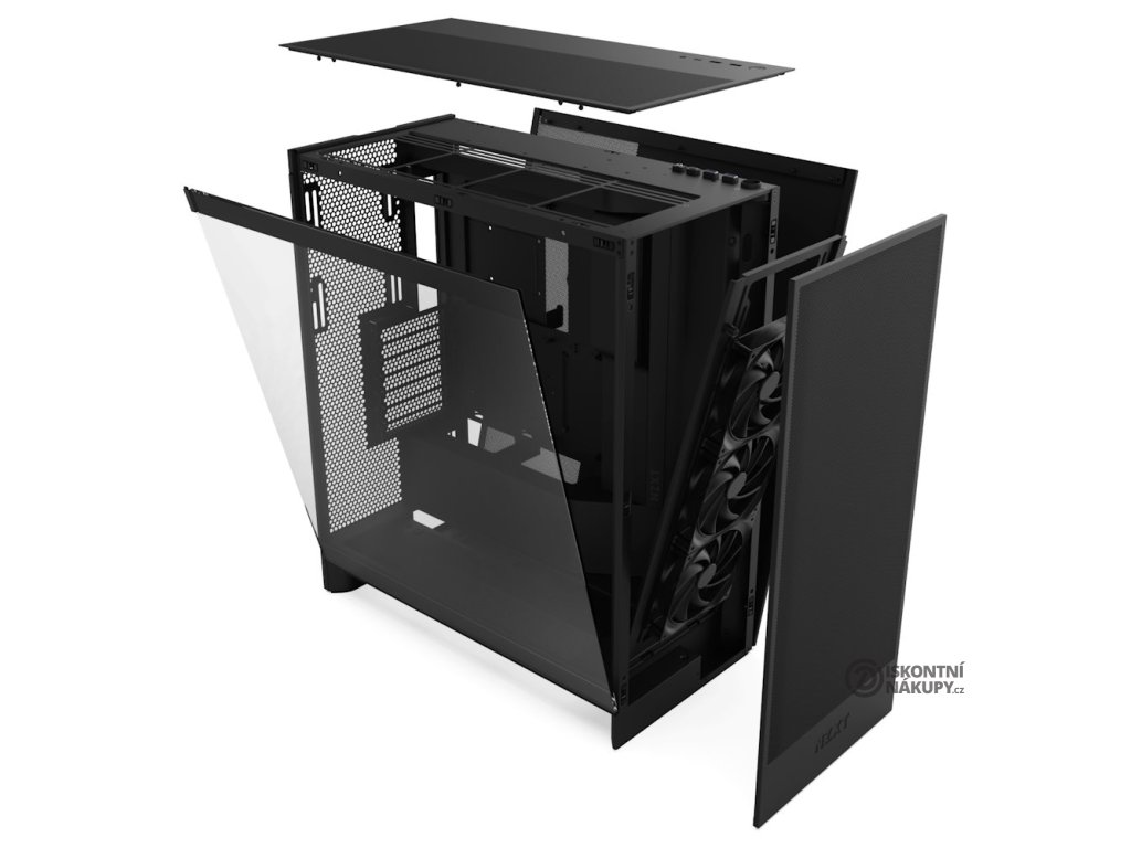 Počítačová skříň NZXT H7 Flow disponuje perforovaným předním a horním panelem pro lepší proudění vzduchu a dosažení optimálního chlazení komponent. Konstrukce je navržena s ohledem na snadný upgrade a výměnu součástek bez použití nářadí. Uvnitř skříně je dostatek prostoru pro instalaci komponent.