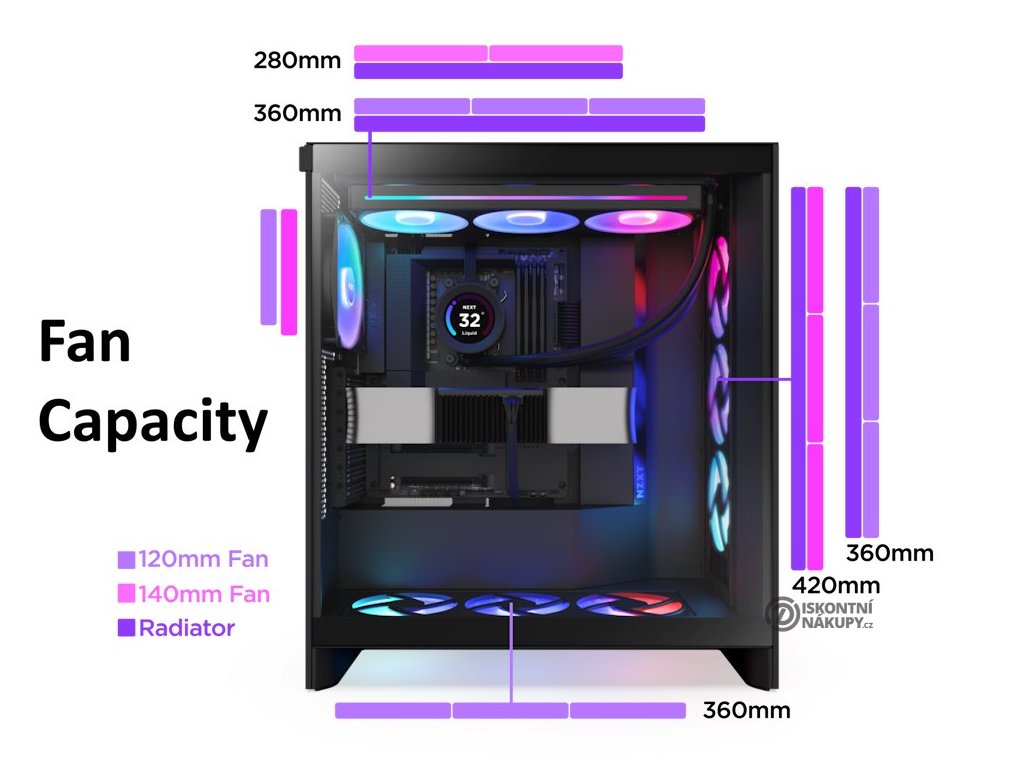 | Velikost instalovaného předního ventilátoru: | 3× 120 mm |