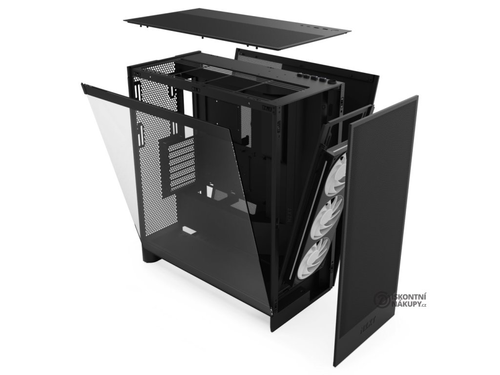 Počítačová skříň NZXT H7 Flow RGB je připravena pro uložení PC komponent a také následné efektivní chlazení. Disponuje jedním RGB ventilátorem F360 RGB Core Fan o velikosti 360 mm (kombinace 3× 120mm ventilátorů) pro chlazení s tichým chodem. Perforovaný přední a horní panel ještě zvyšuje proudění vzduchu a celkový chladicí výkon. Vnitřní prostor skříně umožňuje efektivní správu kabelů a jejich vedení pomocí háčků nebo popruhů. Přístup ke komponentám v případě výměny je snadný a bez nutnosti použít nářadí. Samozřejmostí je také přítomnost základních portů umístěných na horním panelu.