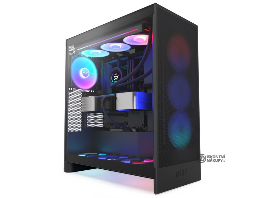 NZXT skříň H7 Flow RGB edition / ATX / 1x 360mm RGB Fan/ USB-C / 2x USB / proskl. bočnice / mesh panel / RGB / černá CM-H72FB-R1