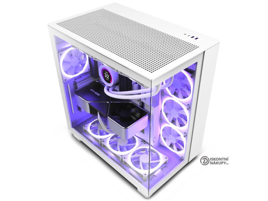 NZXT skříň H9 Flow dvoukomorová ATX / 4x120mm fan / až 10xfan / perforovaný top / proskl. bočnice, front / bílá CM-H91FW-01