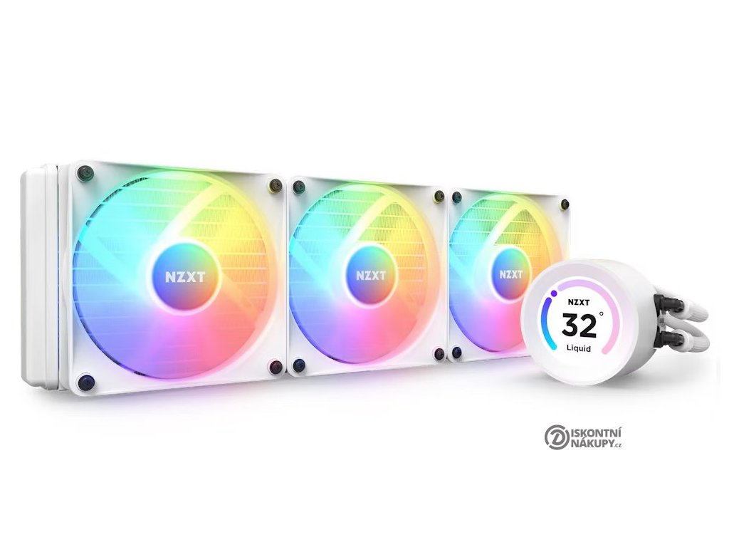 NZXT vodní chladič Kraken 360 ELITE RGB / 3x120mm RGB fan / 4-pin PWM / LCD disp. / 6 let / bílý RL-KR36E-W1