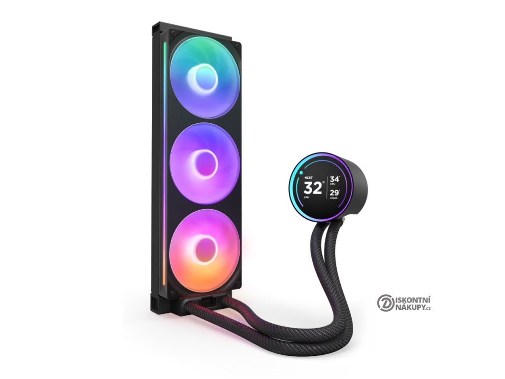 NZXT Kraken Elite 360 RGBVodní chladič určený pro chlazení široké škály procesorů. Vyznačuje se vysokou kvalitou, výkonem a spolehlivostí. Disponuje třemi 120 mm velkými ventilátory s RGB podsvícením. Odolné opletené hadice jsou dlouhé 420 mm a díky dostatečně širokému průměru zaručují plynulý průtok chladicí kapaliny. Prostřednictvím softwaru CAM mohou uživatelé vyladit nastavení pro zajištění optimálního výkonu. Chladič disponuje 2,72" LCD displejem, integrovaným v chladicím bloku, díky kterému si můžete zcela přizpůsobit vzhled chladiče. Na chladič je poskytována záruka 6 let.