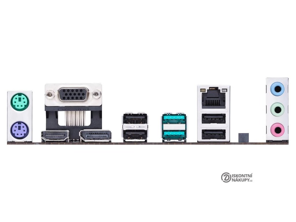 7× USB 2.0 port (4 porty na zadním panelu, 3 porty dostupné přes interní USB konektory)
