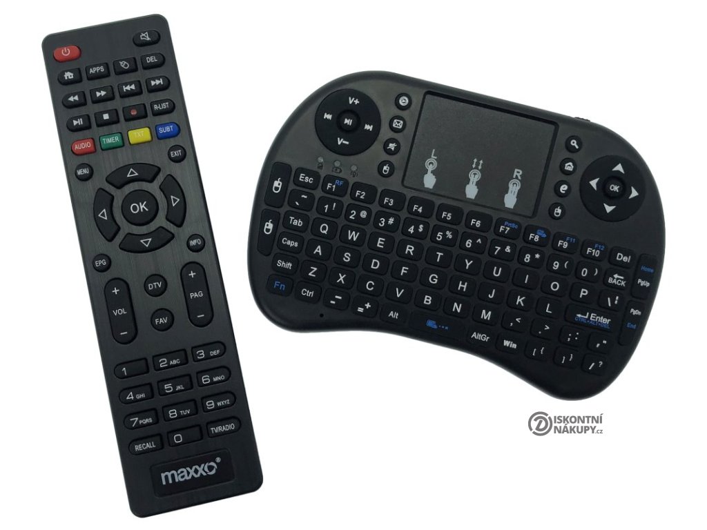 Součástí balení je HDMI kabel, základní dálkové ovládání a ovladač AirMouse s dotykovou plochou a klávesnicí.