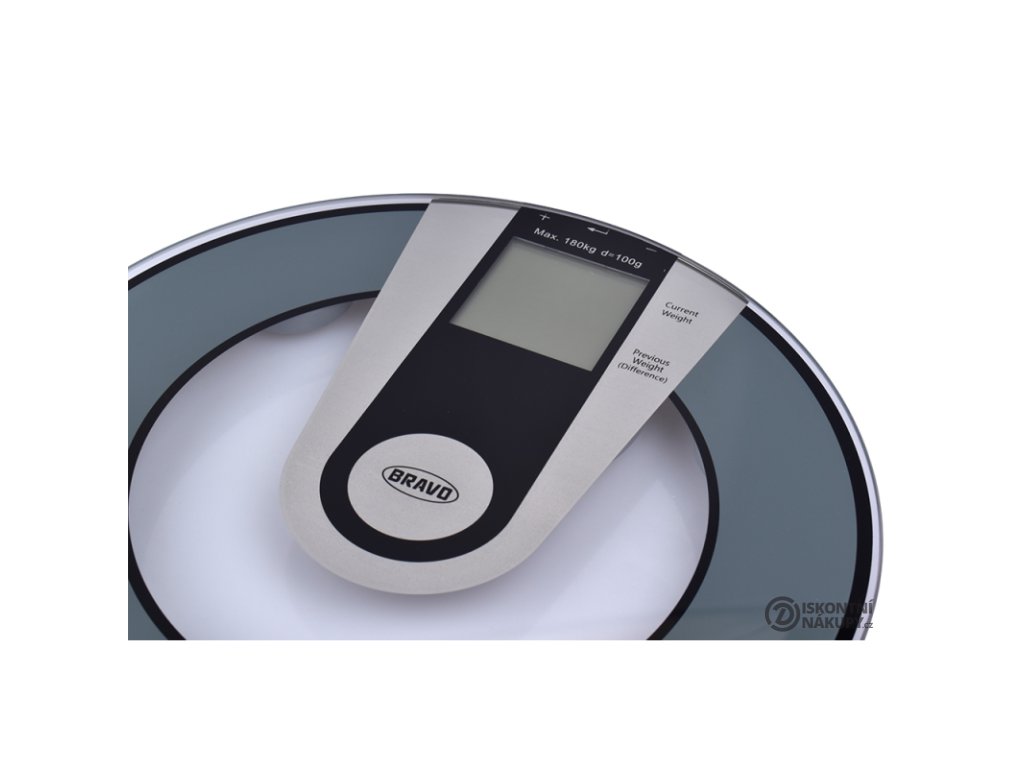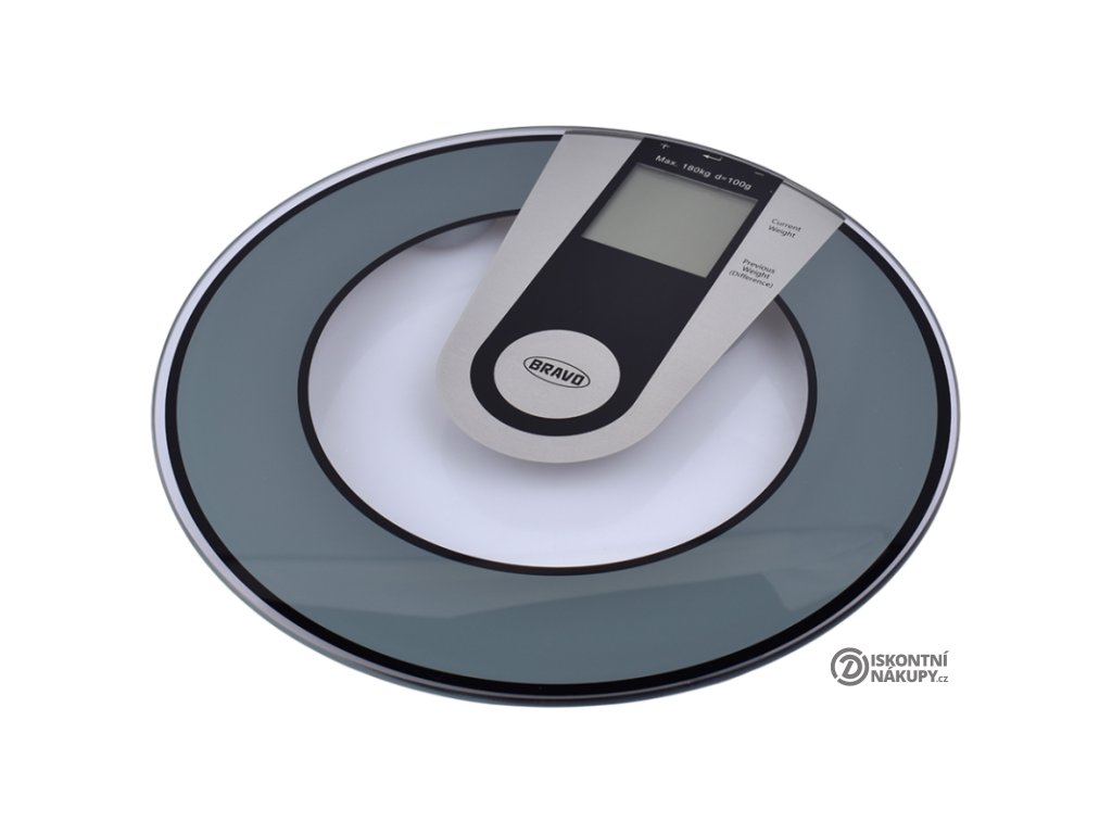 Osobní váha Bravo B-5068 s nosností 180 kg a extra velkým LCD displejem. Paměť váhy umožňuje zjistit předchozí a aktuální hmotnost.