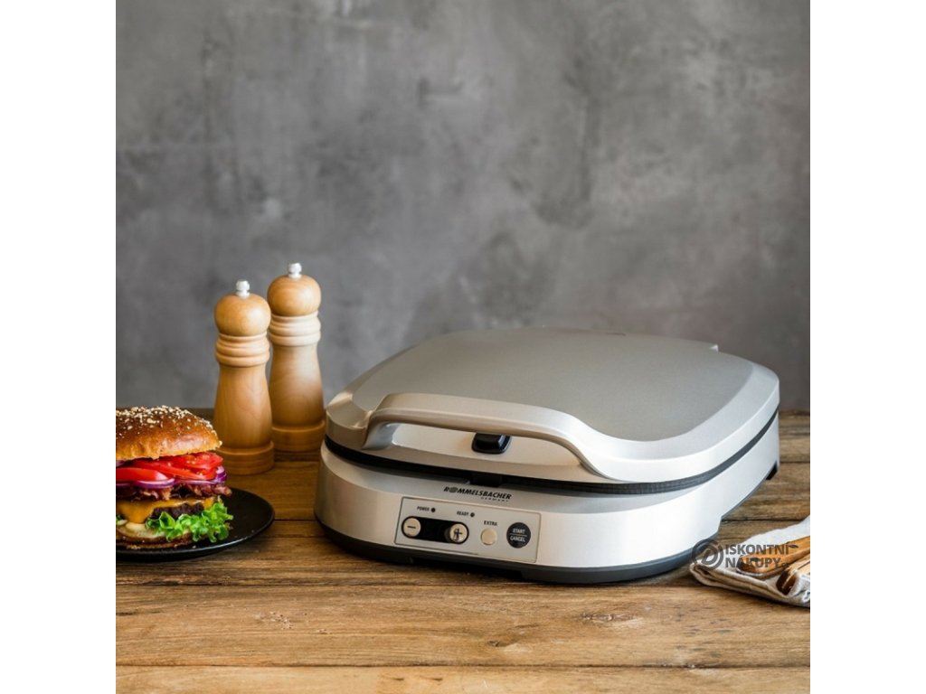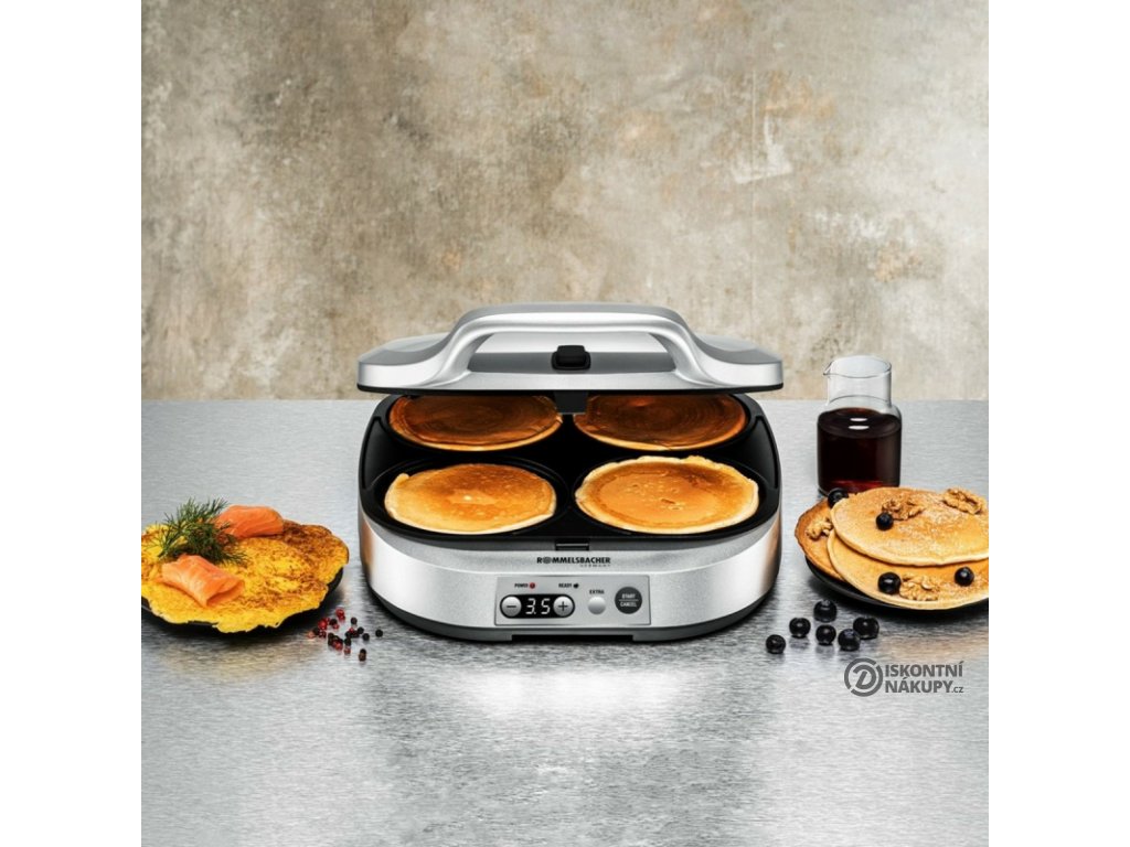 Tento výkonný spotřebič nahřeje čtyři velké, nepřilnavé pečicí formy během několika minut. Spotřebič se pohodlně ovládá dotykovými tlačítky a LED displej poskytuje dobrý přehled. Masivní tlakově lité hliníkové desky optimálně distribuují teplo a zajišťují rovnoměrné výsledky pečení.