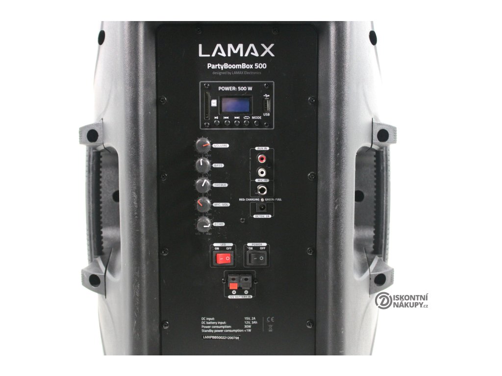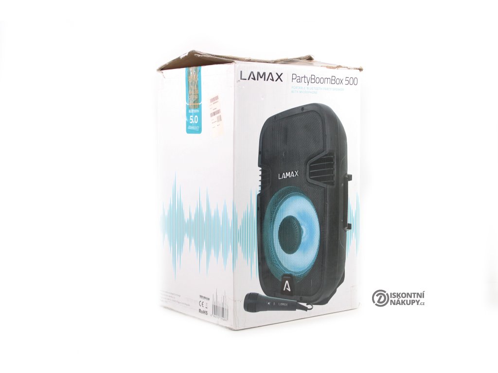 Party reproduktor LAMAX PartyBoomBox500 černý ..Odzkoušeno ..Vráceno z reklamace - nový ovladač ..Kosmetické oděrky ..Záruka 12 měsíců