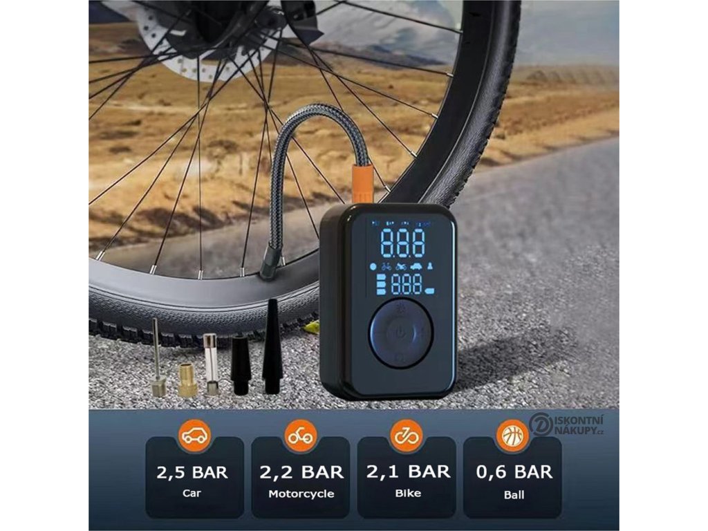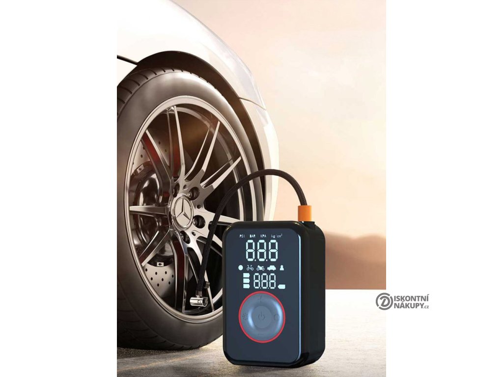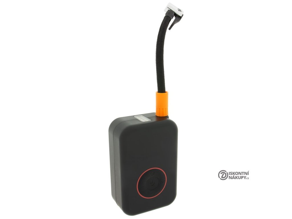 Tento kompaktní elektrický mini kompresor je ideálním společníkem na cesty. S maximálním tlakem 10,3 bar (150 PSI) a výkonem 84 W snadno nahustíte pneumatiky kol, motorek, automobilů, míče, nafukovací matrace a další předměty. Díky integrované baterii s kapacitou 4000 mAh funguje zcela bezdrátově, a navíc slouží jako powerbanka pro nabíjení mobilních zařízení přes USB výstup (5 V / 2 A).