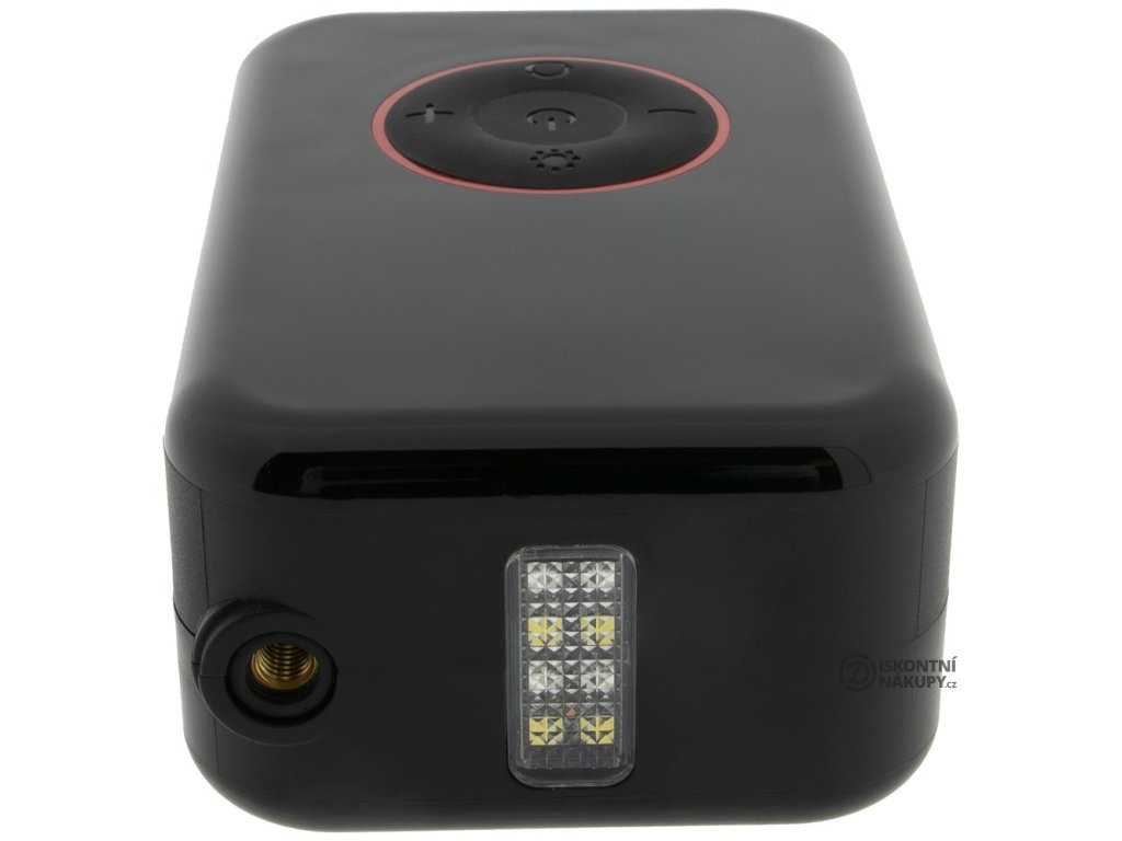 Vestavěná baterie s kapacitou 4000 mAh slouží nejen pro napájení kompresoru, ale také jako powerbanka pro nabíjení mobilních zařízení přes USB-A výstup. Integrovaná LED svítilna poskytuje dostatečné osvětlení při práci v noci nebo za snížené viditelnosti. Červené SOS světlo lze využít jako výstražný signál v nouzových situacích.