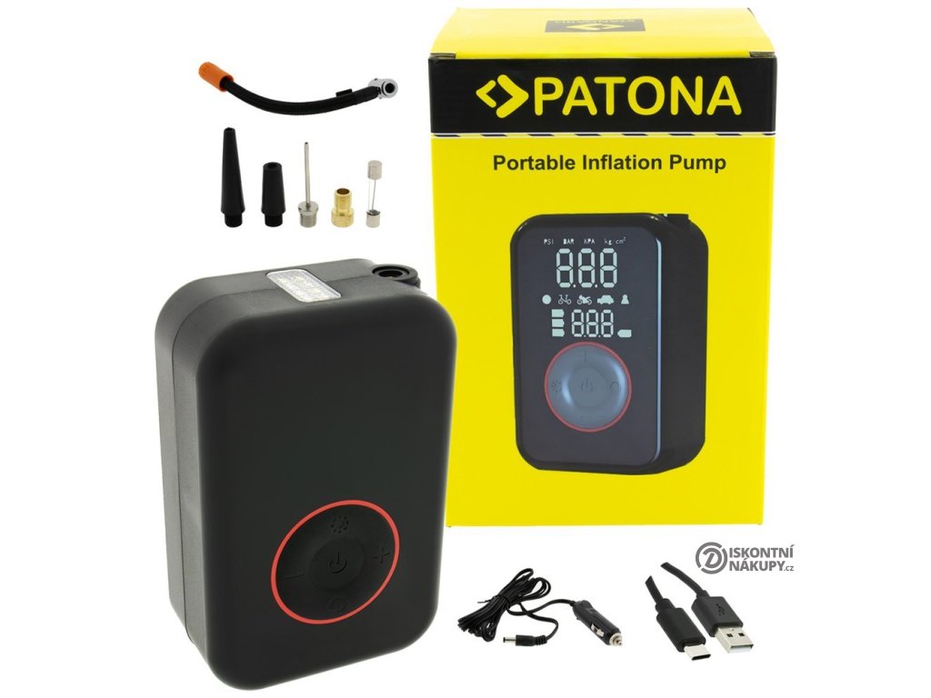 PATONA cestovní mini kompresor do auta, na kolo/ powerbank 4000 mAh/ LED SOS/ USB-A/ USB-C/ LCD PT4223