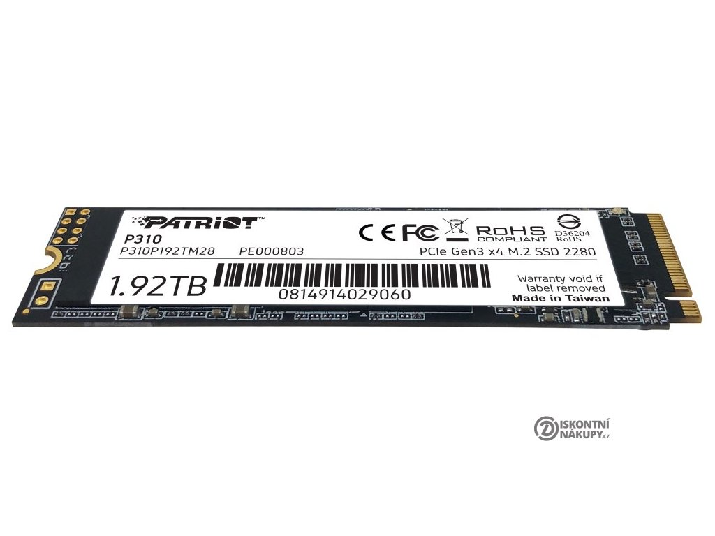 Patriot P310 1,92 TBInterní SSD disk formátu M.2 s kapacitou 1,92 TB. Díky nejnovější technologii a výkonným ovládacím algoritmům je vhodný do široké škály zařízení. Propojení je realizováno skrze PCIe Gen3 x4, které nabízí přenosové rychlosti až 1800 MB/s při zápisu a až 2100 MB/s při čtení. Výsledkem je mnohem rychlejší přenos i zálohování objemných dat včetně 4K videí.