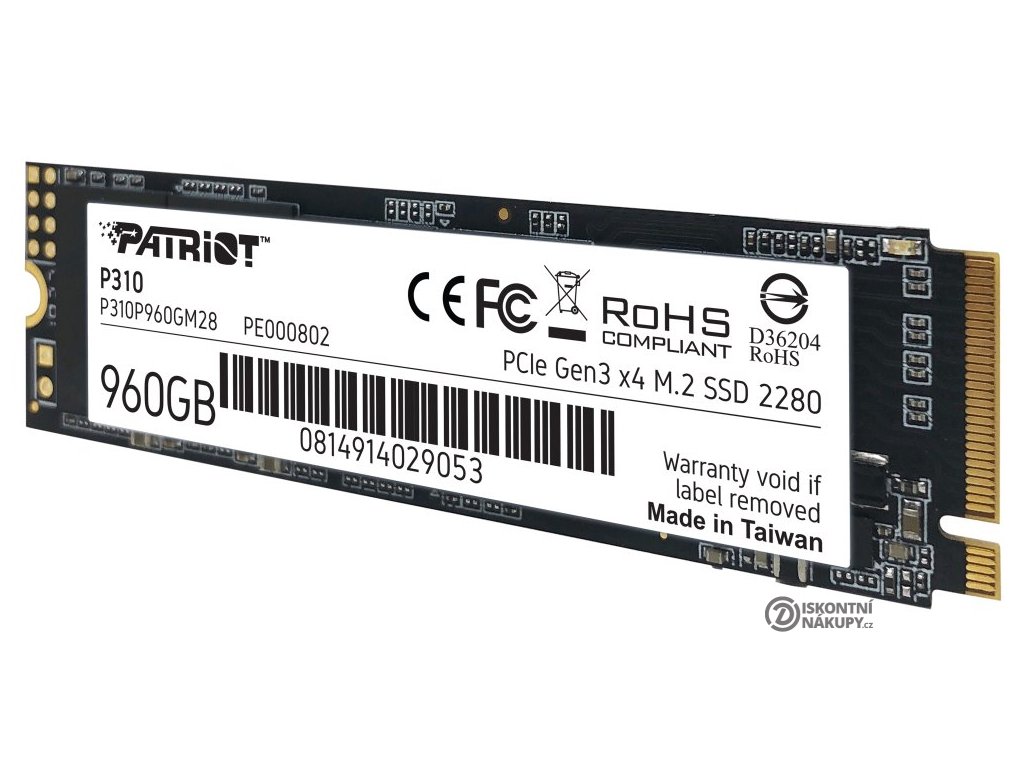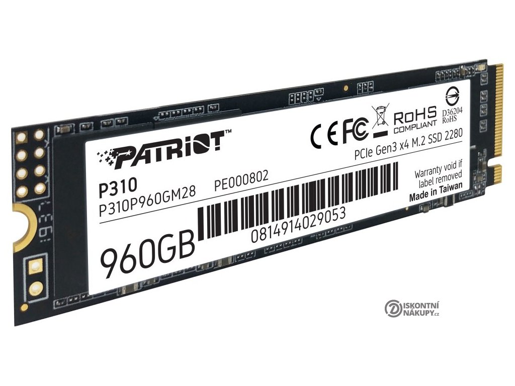 Patriot P310 960 GBInterní SSD disk formátu M.2 s kapacitou 960 GB. Díky nejnovější technologii a výkonným ovládacím algoritmům je vhodný do široké škály zařízení. Propojení je realizováno skrze PCIe Gen3 x4, které nabízí přenosové rychlosti až 1800 MB/s při zápisu a až 2100 MB/s při čtení. Výsledkem je mnohem rychlejší přenos i zálohování objemných dat včetně 4K videí.