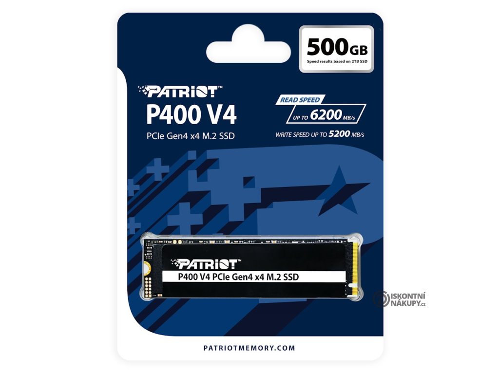 Patriot P400 V4 500 GBInterní SSD disk formátu M.2 s kapacitou 500 GB. Díky nejnovější technologii a výkonným ovládacím algoritmům je vhodný do široké škály zařízení. Propojení je realizováno skrze PCIe Gen4 x4, které nabízí přenosové rychlosti až 3000 MB/s při zápisu a až 5000 MB/s při čtení. Výsledkem je mnohem rychlejší přenos i zálohování objemných dat včetně 4K videí. Je optimalizovaný pro použití s PC a PS5. Disk je vybaven grafenovým pasivním chladičem.