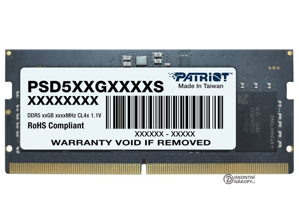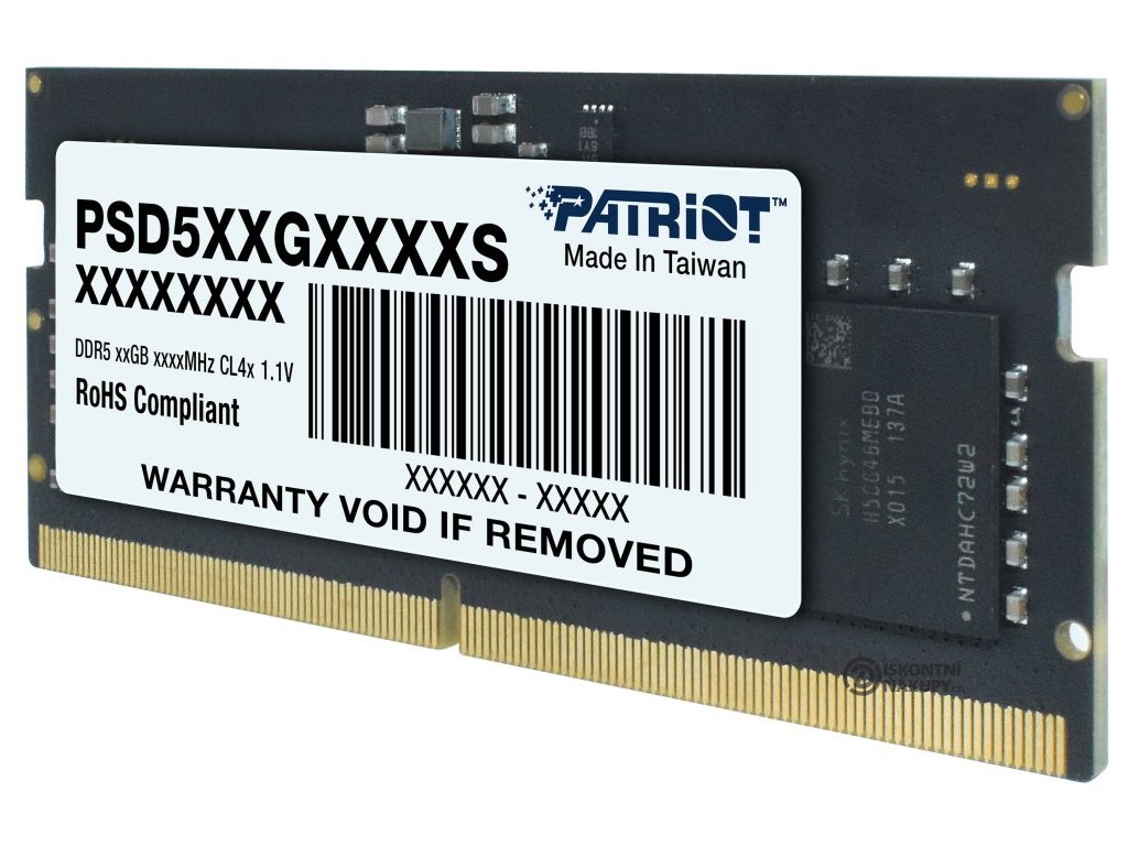 Patriot Signature Line 8 GB DDR5 5600 MT/sOperační paměť pro notebooky o velikosti 8 GB. Dosahuje datového přenosu 5600 MT/s.