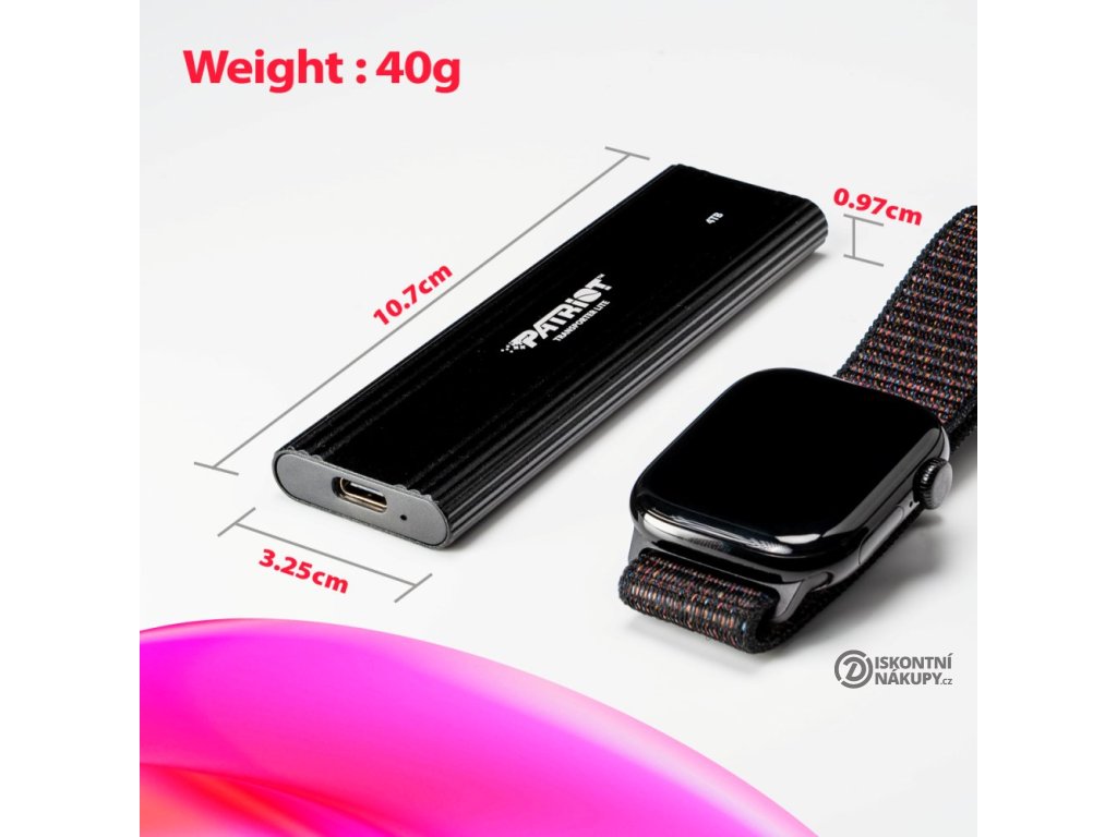 PATRIOT TRANSPORTER Lite 512GB Portable SSD / USB 3.2 Gen2 / USB-C / externí / hliníkové tělo / černý PTPL512GPECB