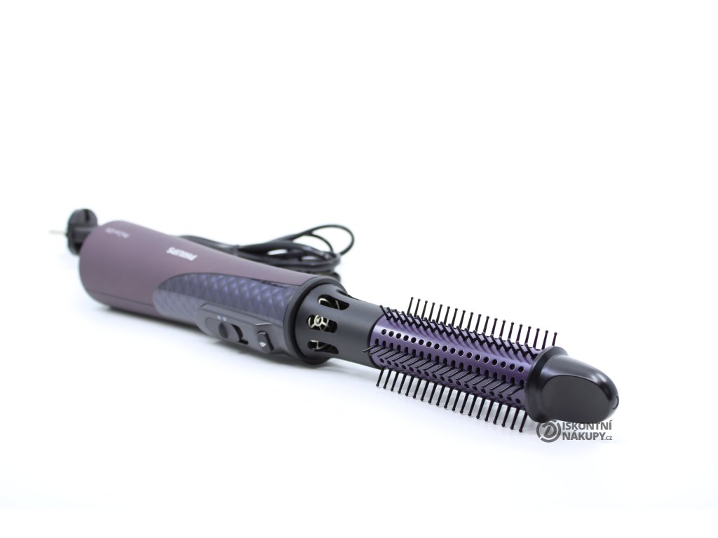 Tato snadno použitelná foukací kulma je kartáč i kulma v jednom. Štětinky se po stisknutí tlačítka navinou do kartáče, a přístroj tak snadno vytáhnete z vlasů. Zůstane nádherně živá kadeř.