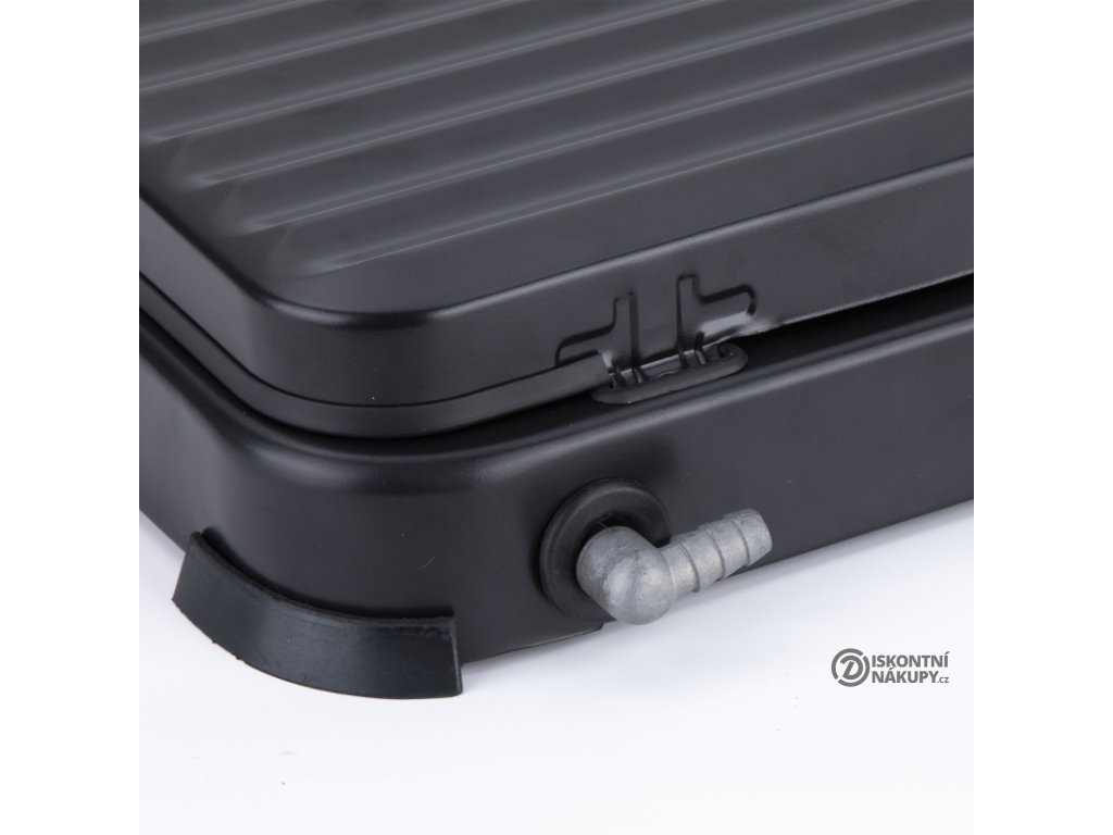 Plynový vařič. Počet hořáků: 2, s víkem.Typ zapalování: manuální. Typ plynu: propan a butan. Měděný ventil