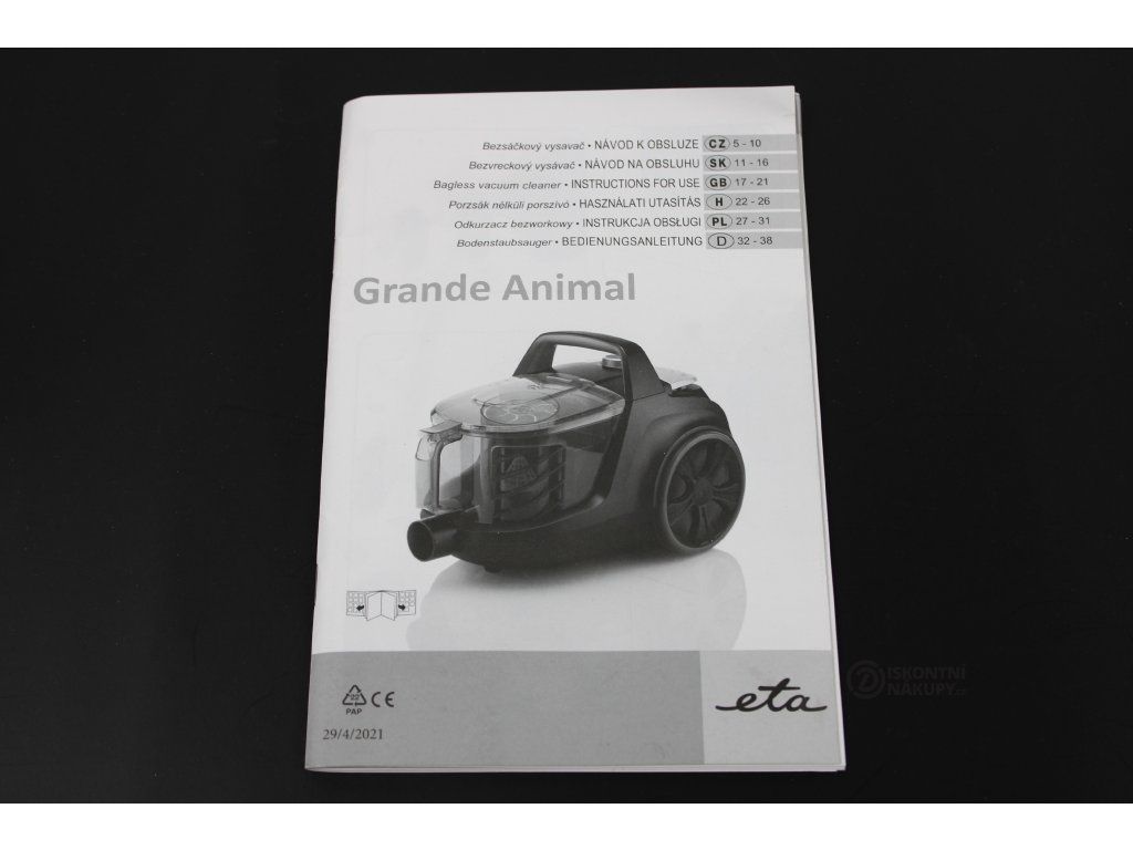 Podlahový vysavač ETA Grande Animal 2223 90000 černý/zlatý ..Použité zboží - Vyčištěno ..Špinavý filtr ..Kosmetické oděrky ..Chybí malý turbokartáč a nástavec DermoPet ..Náhradní krabice ..Záruka 12 měsíců