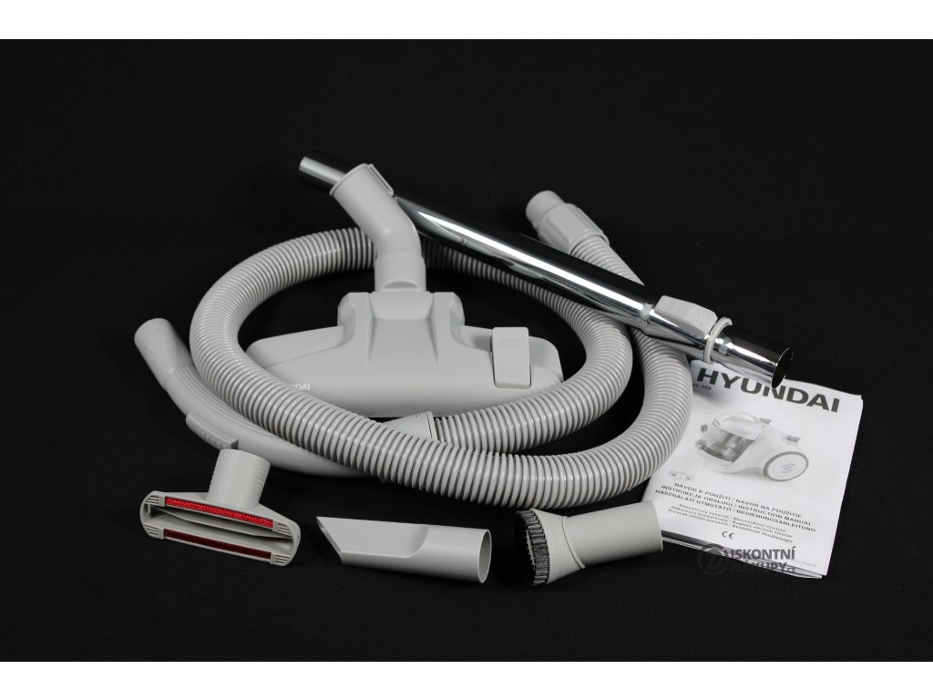 Aby byl úklid vašeho domova perfektní, naleznete v balení současně s vysavačem Hyundai: univerzální podlahovou hubici s výsuvným kartáčem, štěrbinovou hubici (pro vysávání v úzkých a těžko přístupných místech), kartáček pro vysávání prachu, polštářovou hubici (pro šetrnou péči o měkké textilní povrchy) a 2 plastové sací trubky.