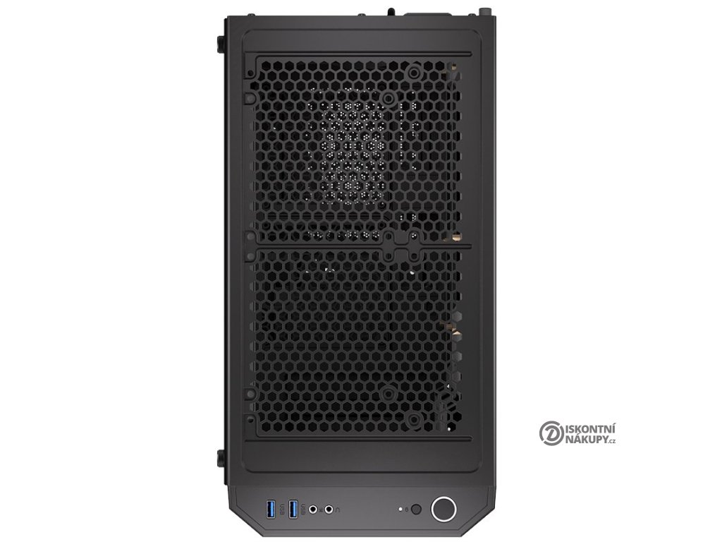 Konektory na horním panelu: 2× USB 3.0, 1× sluchátkový výstup, 1× vstup pro mikrofon