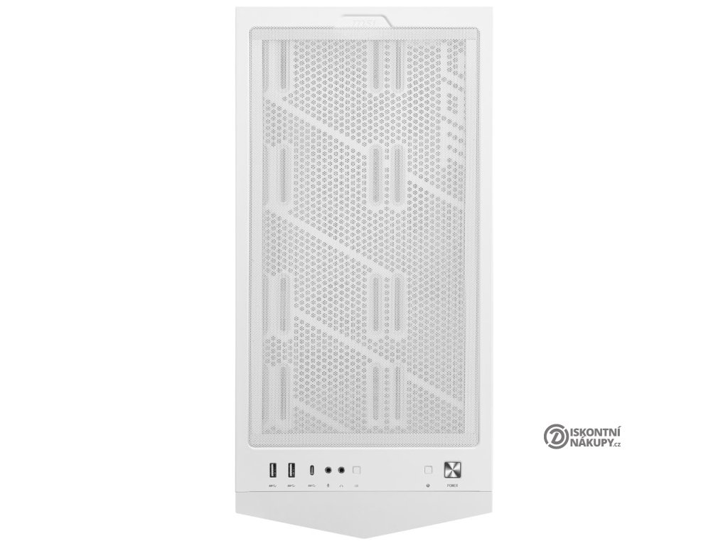 MSI MPG GUNGNIR 300R AIRFLOW WHITEModerní počítačová skříň s neotřelým designem, průhlednou bočnicí z temperovaného skla a poloprůhledným čelem s perforací pro optimální proudění vzduchu. Formát Middle Tower nabízí dostatek prostoru pro uložení šesti 2,5" disků, dvou 3,5" disků a až 12 ventilátorů. Předinstalovány jsou čtyři 120 mm ventilátory s adresovatelným RGB podsvícením. Rychlou změnu podsvícení umožňuje tlačítko na horním panelu. Zde se také nachází dva porty USB 3.0, jeden port USB-C, sluchátkový výstup a audio vstup pro mikrofon. Ve skříni je dostatek prostoru pro chladič CPU do výšky až 175 mm a grafickou kartu o délce až 360 mm. Důmyslné řešení umožňuje pohodlné umístění až 360 mm dlouhého výměníku vodního chlazení na přední či horní straně. Skříň je dodávána bez zdroje.