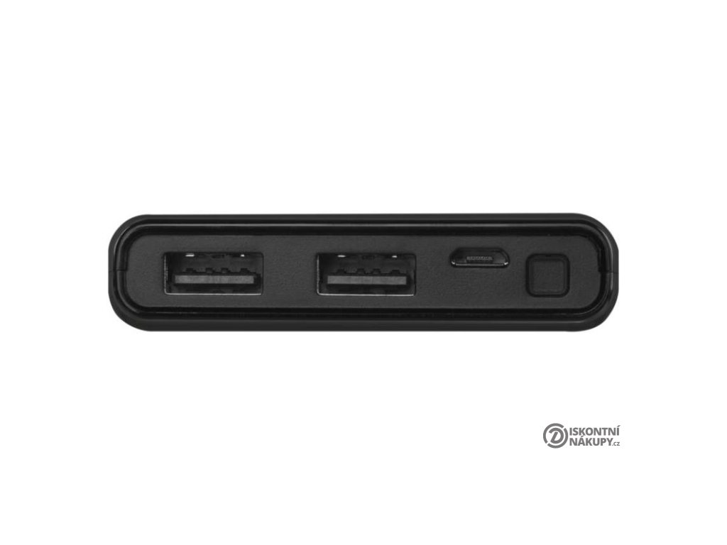 auto ON/OFF: ano|barva: černá|doba nabíjení: 6 hodin|hmotnost: 220 g|kapacita akumulátoru: 10 000 mAh/37 Wh|LED indikátor nabíjení: ano|LED indikátor stavu baterie: ano|materiál: ABS plast|max. vstupní výkon: 10 W|max. výkon drátového nabíjení: 10,5 W|ochrana proti podbití: ano|ochrana proti přebití: ano|ochrana proti přetížení: ano|ochrana proti zkratu: ano|passthrough: ano|přibalený kabel: micro USB, USB-C, data|prodejní obal: 1 ks, papírová krabička|provozní teplota: 0 °C až +40 °C|rozměr: 138 × 68 × 16 mm|rychlé nabíjení: ne|typ akumulátoru: Li-Po 3,7 V|typ vstupního rozhraní: micro USB|typ výstupního rozhraní: 2× USB-A|záruční doba: 2 rokyDoplňkové parametry