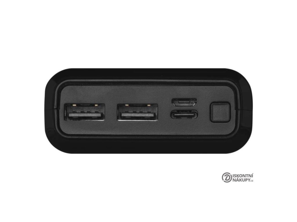auto ON/OFF: ano|barva: černá|doba nabíjení: 12 hodin|hmotnost: 412 g|kapacita akumulátoru: 20 000 mAh/74 Wh|LED indikátor nabíjení: ano|LED indikátor stavu baterie: ano|materiál: ABS plast|max. vstupní výkon: 10 W|max. výkon drátového nabíjení: 10 W|ochrana proti podbití: ano|ochrana proti přebití: ano|ochrana proti přetížení: ano|ochrana proti zkratu: ano|passthrough: ano|přibalený kabel: USB-A/USB-C, data|prodejní obal: 1 ks, papírová krabička|provozní teplota: 0 °C až +40 °C|rozměr: 142 × 67 × 27 mm|rychlé nabíjení: ne|typ akumulátoru: Li-Po 3,7 V|typ vstupního rozhraní: 1× micro USB, 1× USB-C|typ výstupního rozhraní: 2× USB-A, 1× USB-C|záruční doba: 2 rokyDoplňkové parametry
