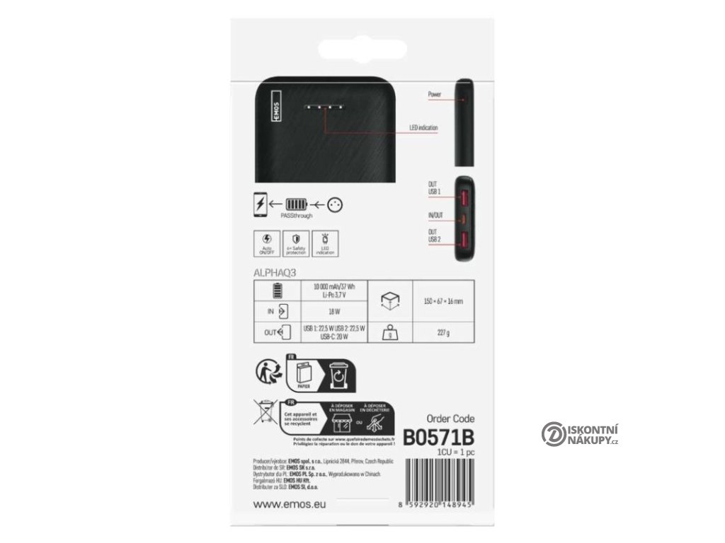 Powerbanka EMOS AlphaQ3, 10 000 mAh, 22,5 W, černá