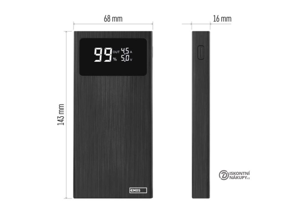 Powerbanka EMOS BetaQ 10, 10 000 mAh, 22,5 W, černá