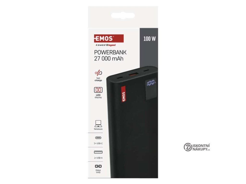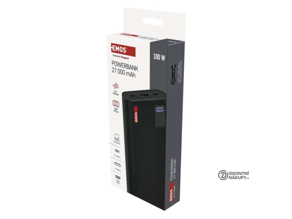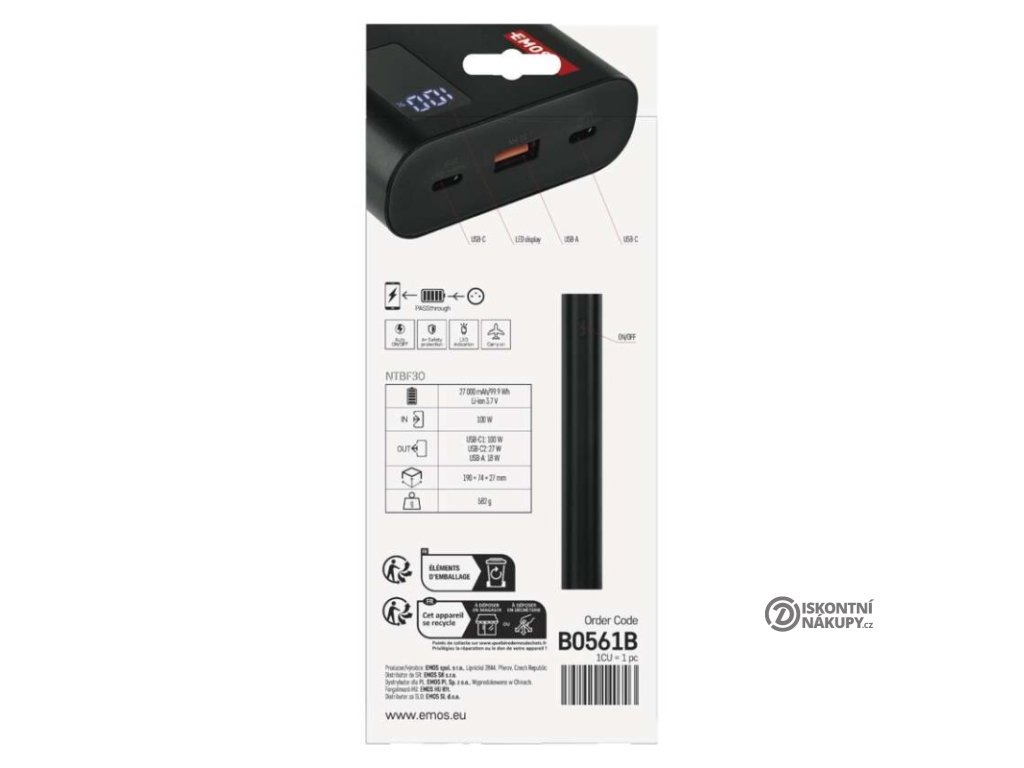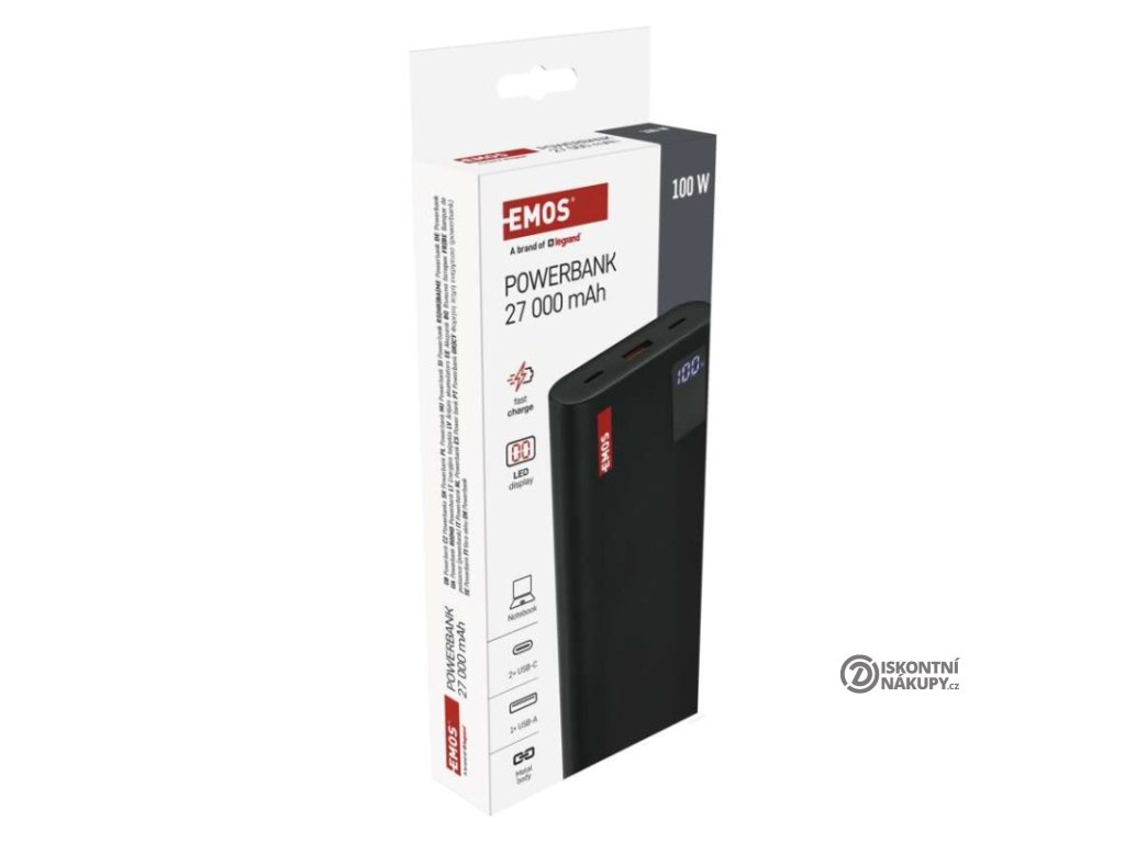 Powerbanka EMOS NTBF30, 27 000 mAh, 100 W PD, černá