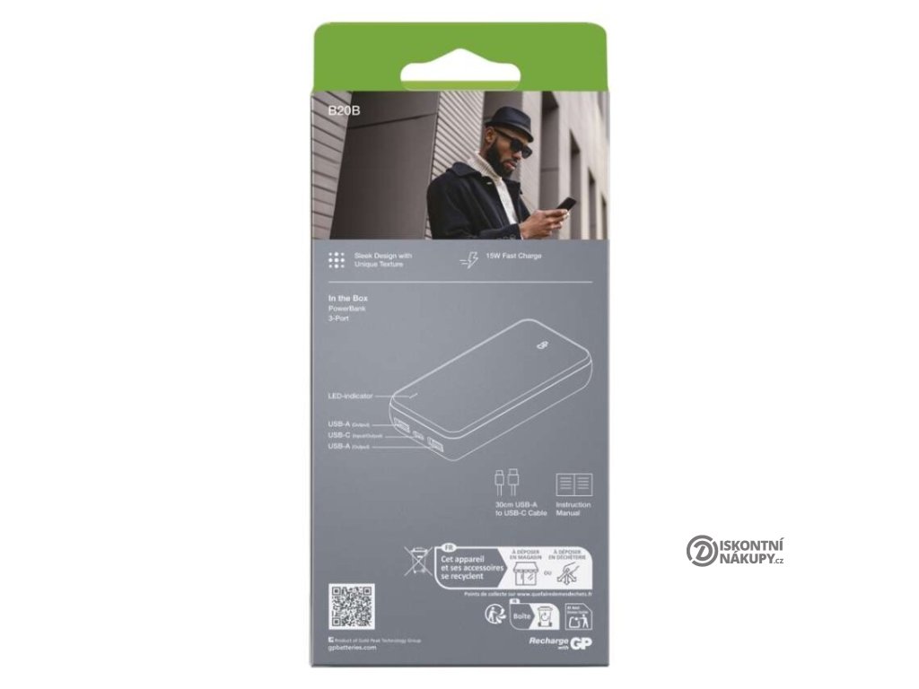 Powerbanka GP B+ Series, 20 000 mAh, 15 W, černá