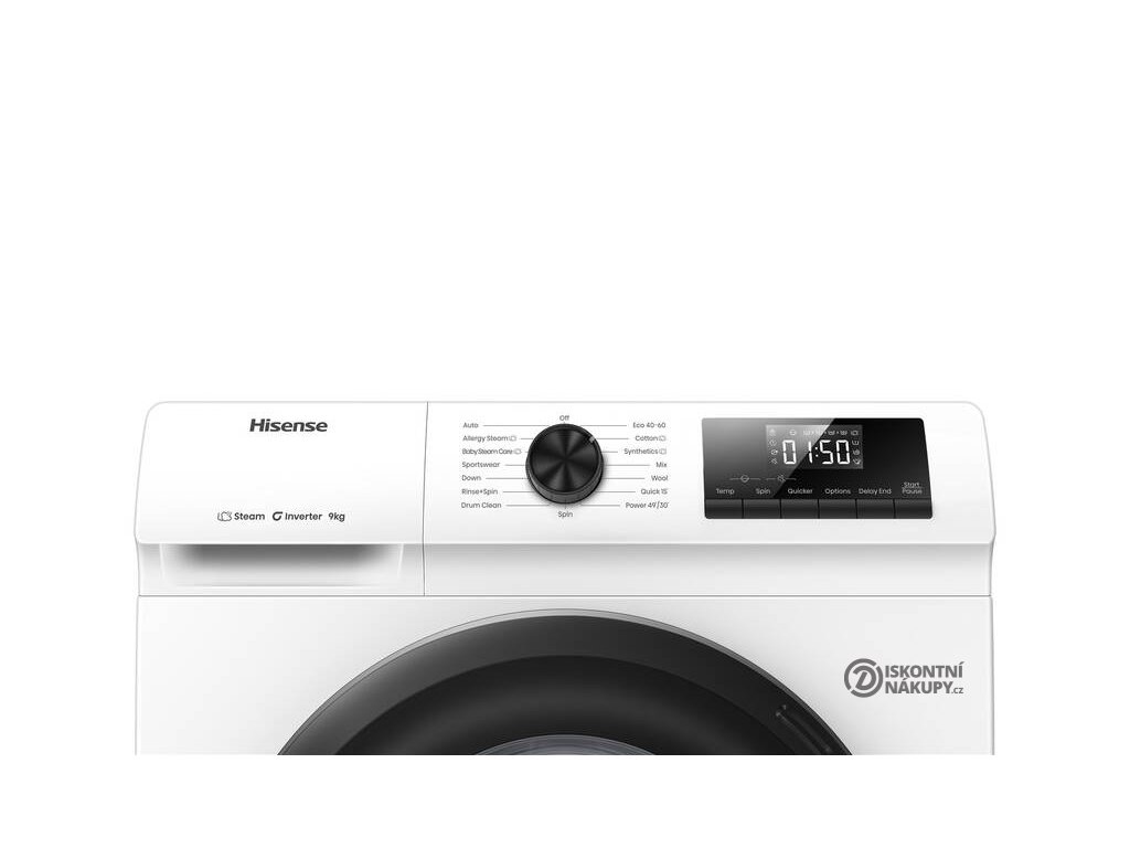 Ovládací panel automatické pračky Hisense WF1Q9041BW se skládá z otočného knoflíku a dotykových tlačítek. Pohybem ovladače zvolíte požadovaný program a stiskem konkrétního tlačítka je možné upravit teplotu, počet otáček či celkovou dobu trvání programu. Na pravé straně je umístěn displej, na kterém můžete zkontrolovat zbývající čas do konce pracího cyklu. |
