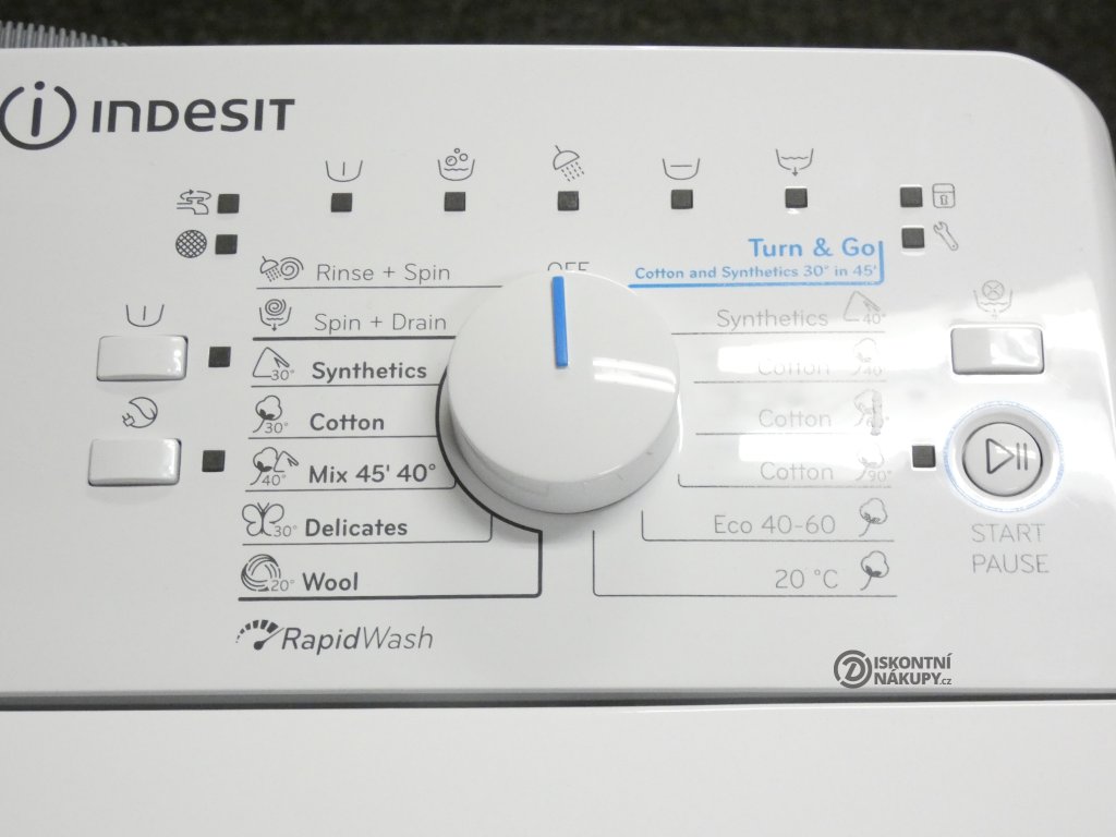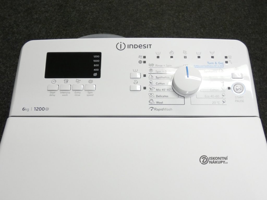 Vrchem plněná pračka Indesit BTW S6240P EU/N je ideálním řešením do menších prostor. Pracuje v úsporné energetické třídě C a disponuje kapacitou pro 6 kg prádla. Při odstřeďování zvládne rychlost otáček až 1 200 ot./min. S funkcí odloženého startu si nastavíte začátek pracího cyklu na pozdější dobu tak, jak vám to bude vyhovovat. K pohodlné manipulaci s prádlem přispívá funkce Drum Up, která po dokončení cyklu automaticky natočí buben otvíráním nahoru. Precizní kontrolu nad procesem praní zajistí přehledný digitální displej.