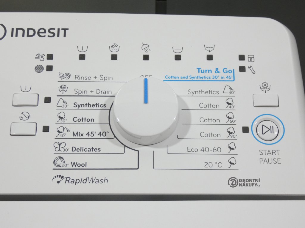 - Funkce Turn & Go: jedno otočení knoflíkem a za 45 minut je prádlo vyprané