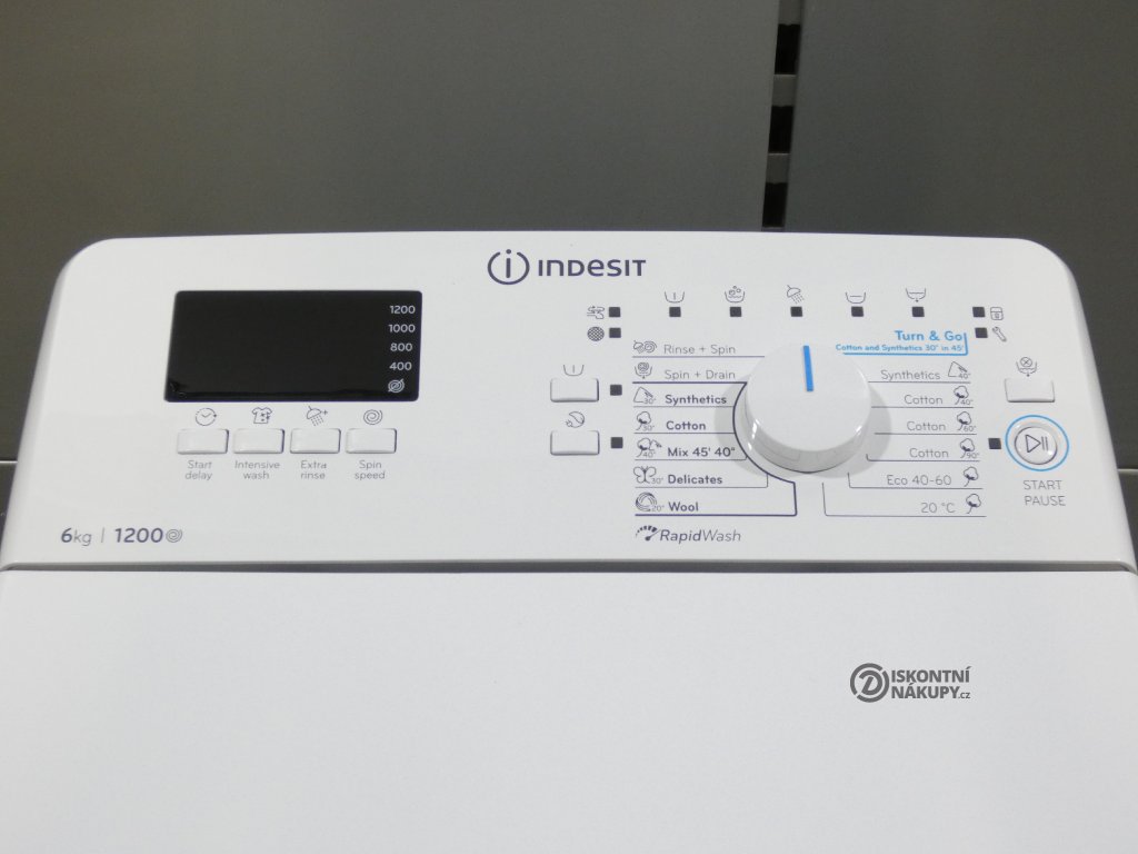 Vrchem plněná pračka Indesit BTW S6240P EU/N je ideálním řešením do menších prostor. Pracuje v úsporné energetické třídě C a disponuje kapacitou pro 6 kg prádla. Při odstřeďování zvládne rychlost otáček až 1 200 ot./min. S funkcí odloženého startu si nastavíte začátek pracího cyklu na pozdější dobu tak, jak vám to bude vyhovovat. K pohodlné manipulaci s prádlem přispívá funkce Drum Up, která po dokončení cyklu automaticky natočí buben otvíráním nahoru. Precizní kontrolu nad procesem praní zajistí přehledný digitální displej.
