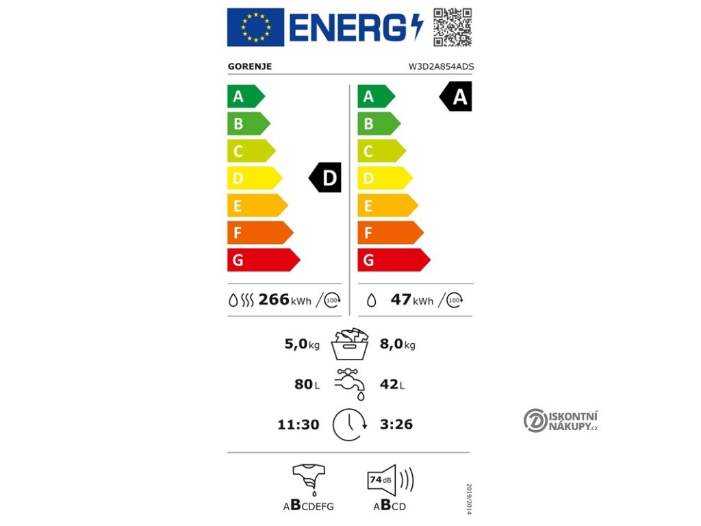 | Spotřeba el. energie na 100 cyklů (praní + sušení): | 266 kWh |