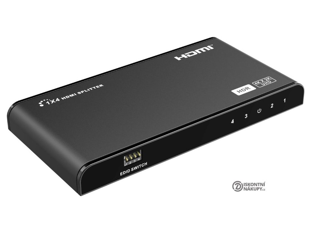 PremiumCord HDMI 2.0 splitter 1-4 porty, 4K x 2K/60Hz, FULL HD, 3D, černý khsplit4f