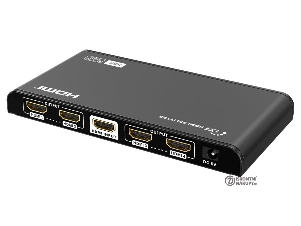 PremiumCord HDMI splitter 1-4Tento rozbočovač umožňuje připojit více HDMI obrazovek k jednomu HDMI zdroji. Obsahuje aktivní zesilovač signálu, který umožňuje zapojit za splitter kabely do délky až 8 m. Přenáší obraz i zvuk a zvládá rozlišení až 4K Ultra HD. Samozřejmostí je také podpora 3D obrazu, technologie HDR a standardů Dolby Digital Plus, Dolby TrueHD, DTS-HD Master Audio+ či HDCP 2.2. Kovové pouzdro přepínače zajistí lepší odvod tepla. Napájení je řešeno pomocí přiloženého napájecího adaptéru.