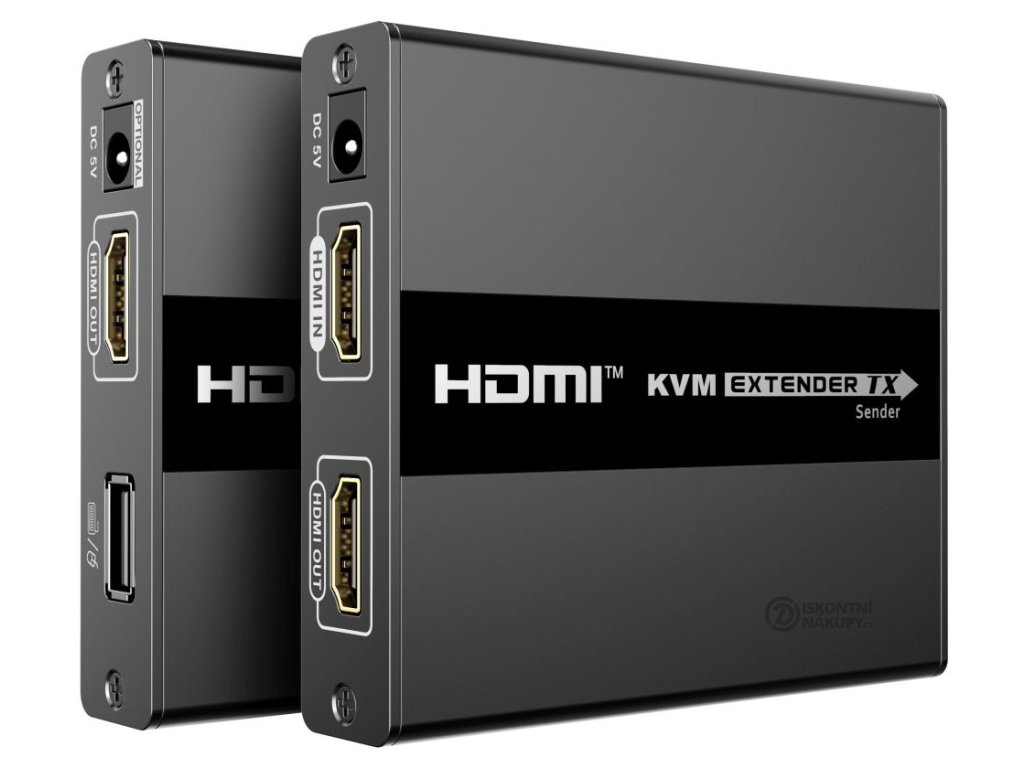 - Extender přenáší také USB, vysílač má jeden USB pro zapojení do počítače. Přijímač má dva USB konektory pro zapojení například myši a klávesnice.