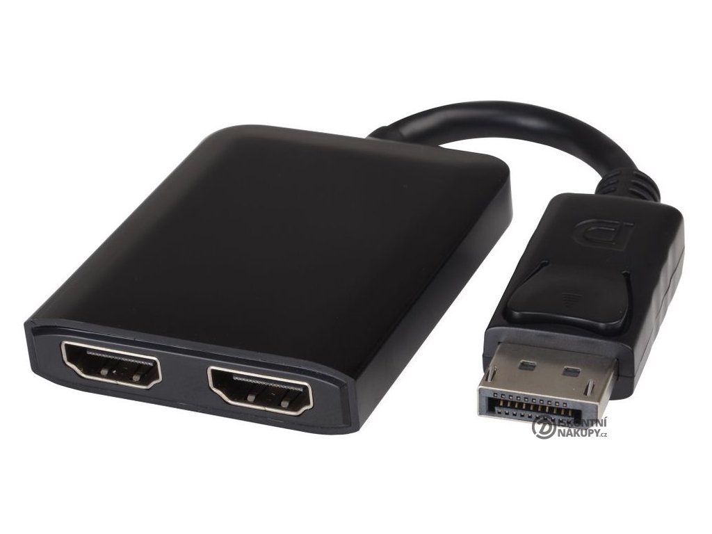 PremiumCord DisplayPort (M) na 2× HDMI (F)Adaptér umožňuje rozšíření pracovní plochy o dva externí HDMI monitory přes DisplayPort, a na každém zobrazovat jiný obraz. Přenáší obraz i zvuk a zvládá rozlišení až 4K×2K při 60 Hz. Podporuje také HDR, 3D, HDCP 1.4 a 2.2 či DSC. Funguje s notebooky, počítači nebo stolními grafickými kartami (vyžaduje hostitelský systém s DP 1.4/HBR3/MST nebo novějším od HP, Dell a Lenovo a grafických karet AMD, NVIDIA a Intel).
