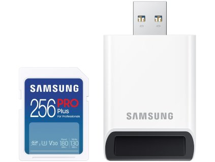 Samsung PRO Plus SDXC 256 GB; Rychlá paměťová karta formátu SDXC pro profesionální použití v dronech, akčních kamerách, 360° kamerách či tabletech nabízí kapacitu 256 GB ....