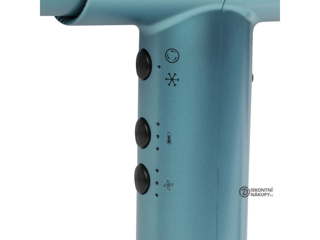 Proudění studeného vzduchu při 28 oC pro nastavení účesu. Umožňuje, aby vlasy netrpěly a my můžeme zajistit profesionální úpravu účesu. Fén obsahuje 1 difuzér a 2 nástavce. Extra plochý nástavec 5mm tryska pro styling a narovnání vlasů jednoduchým způsobem a 9mm nástavec pro pohled pohybem. Difuzér pro péči o kadeře, který díky svému designu simuluje přirozené vysoušení a pomáhá omezit krepatění a definovat kadeře a vlny.