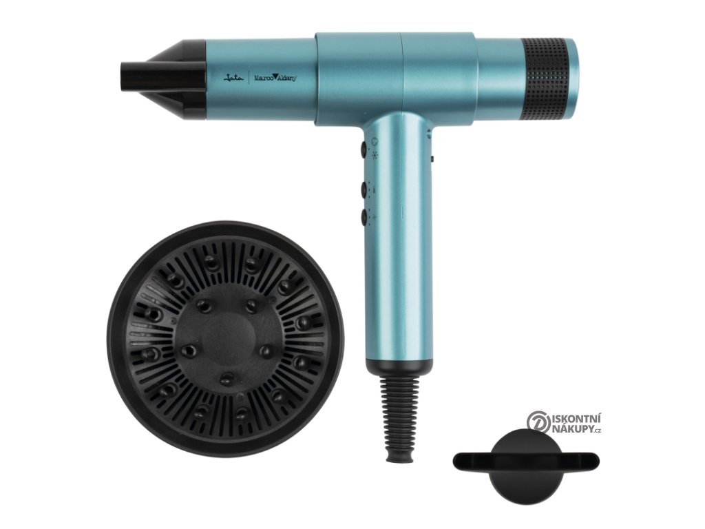 Profesionální fén s ionizáorem z řady profesionální španělského kadeřníka Marca Aldany Jata JBCS5577. Díky vysoce výkonému BLDC motoru dosahuje fén velkého výkonu s mnohem vyšším průtokem vzduchu než běžné fény, až 170 km/h. Motor má až 110 000 ot./min. Velikost motoru nám poskytuje lehký a ergonomický fén, který umožňuje snadný styling doma. Navíc má velkou odolnost, protože díky Brushless technologii se vyhneme tření.