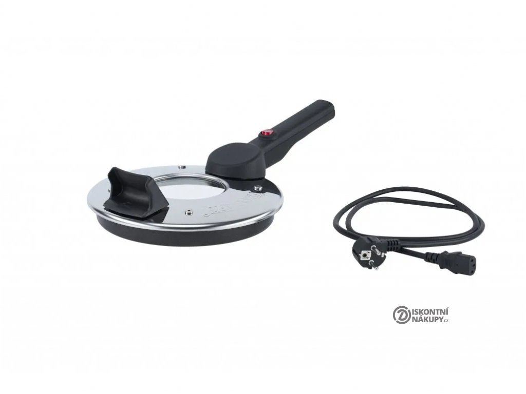 Horní část víka je vyrobena z nerezového plechu a je osazena praktickým skleněným okénkem. Tato část je také vybavena praktickými prvky, které umožňují odkládání pečicího víka na pracovní plochu topnou částí směrem vzhůru. Spodní, topná část je potažena nepřilnavým povrchem Teflon® Classic.