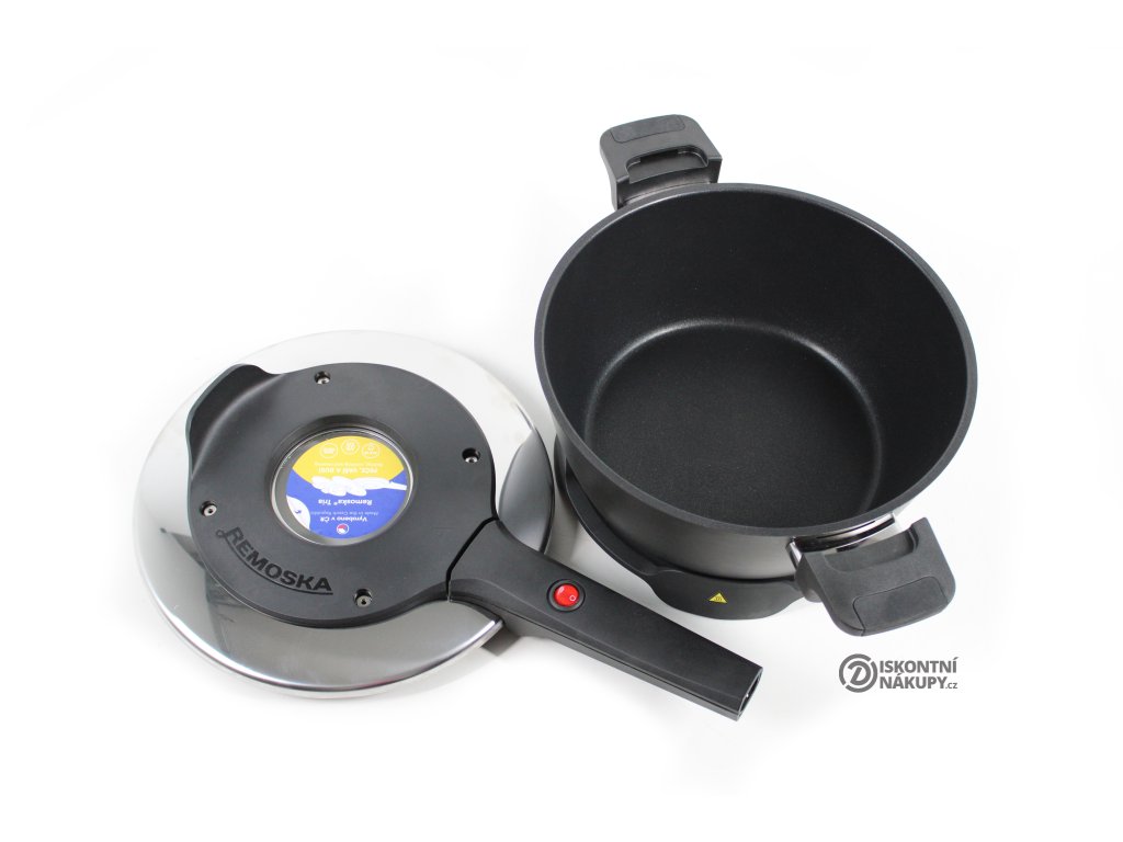 Základem multifunkční Remosky Tria je objemný hrnec o průměru 28 cm, výšce 13 cm a s 4,5 mm silným dnem. Hrnec je z vnitřní i vnější části potažen třívrstvým nepřilnavým povrchem s keramickou výztuží pro maximální odolnost. Touto povrchovou úpravou získává větší odolnost vůči mechanickému poškození. Hrnec je určen pro použití na všech typech sporáků včetně indukce. K hrnci jsou namontována teplotně odolná ucha, takže se nemusíte bát ani zapékání v troubě.